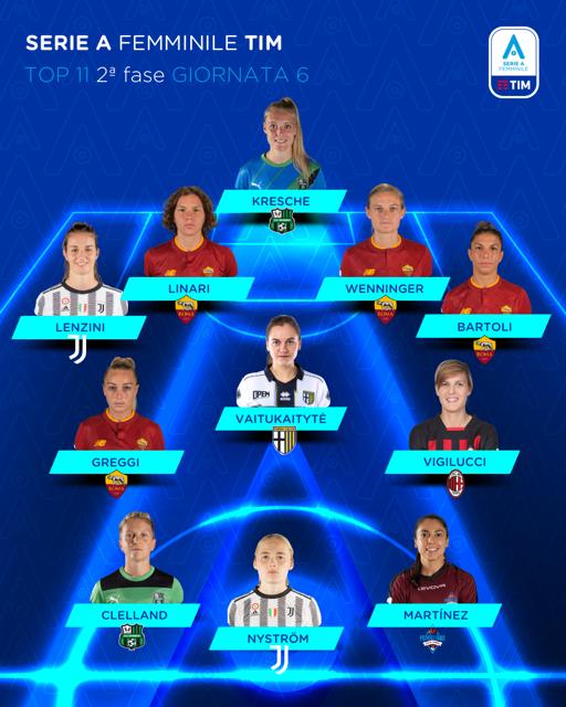 ● Martina Lenzini: Oltre a essere, con Elisa Bartoli, uno dei due difensori con una rete all’attivo nel turno di campionato appena concluso, la bianconera ha registrato una percentuale di passaggi riusciti dell’89.5% nella sfida del Vismara – record tra chi nel match ne ha effettuati almeno 20 totali.