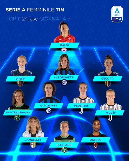 ● Ghoutia Karchouni: La nerazzurra è l’unica giocatrice che nel turno di Serie A appena terminato ha servito più di un assist (due contro la Juventus). Quattro inoltre le occasioni create per le compagne – nessuna ne conta di più tra tutte quelle scese in campo nel weekend.