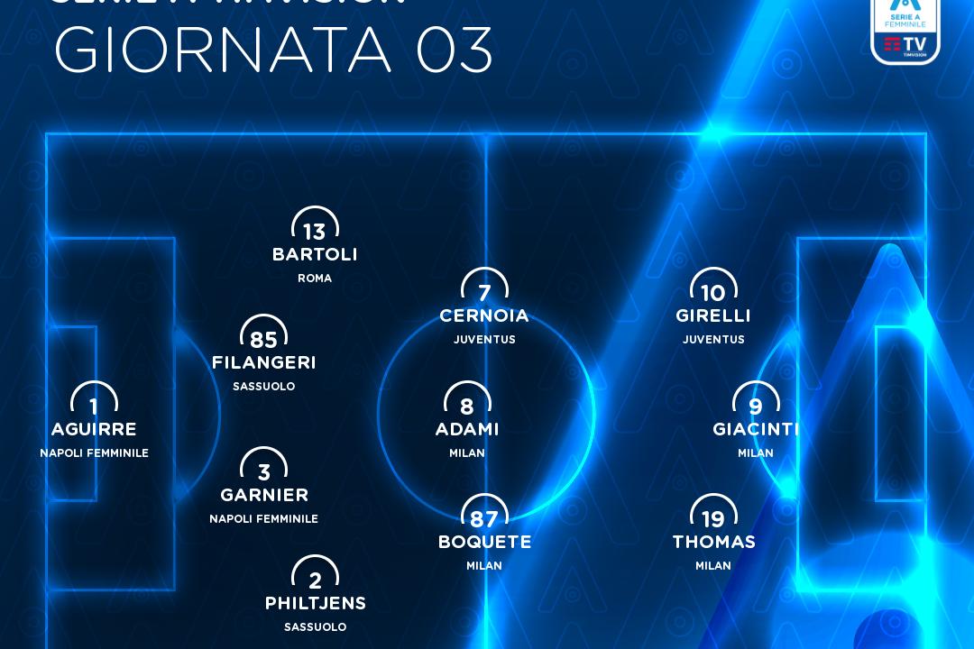  Valentina Cernoia: ha partecipato a tutti e tre i gol della Juventus contro il Verona, con due assit e la rete del 3-0 finale. In più 9 occasioni create, un record in questa terza giornata.