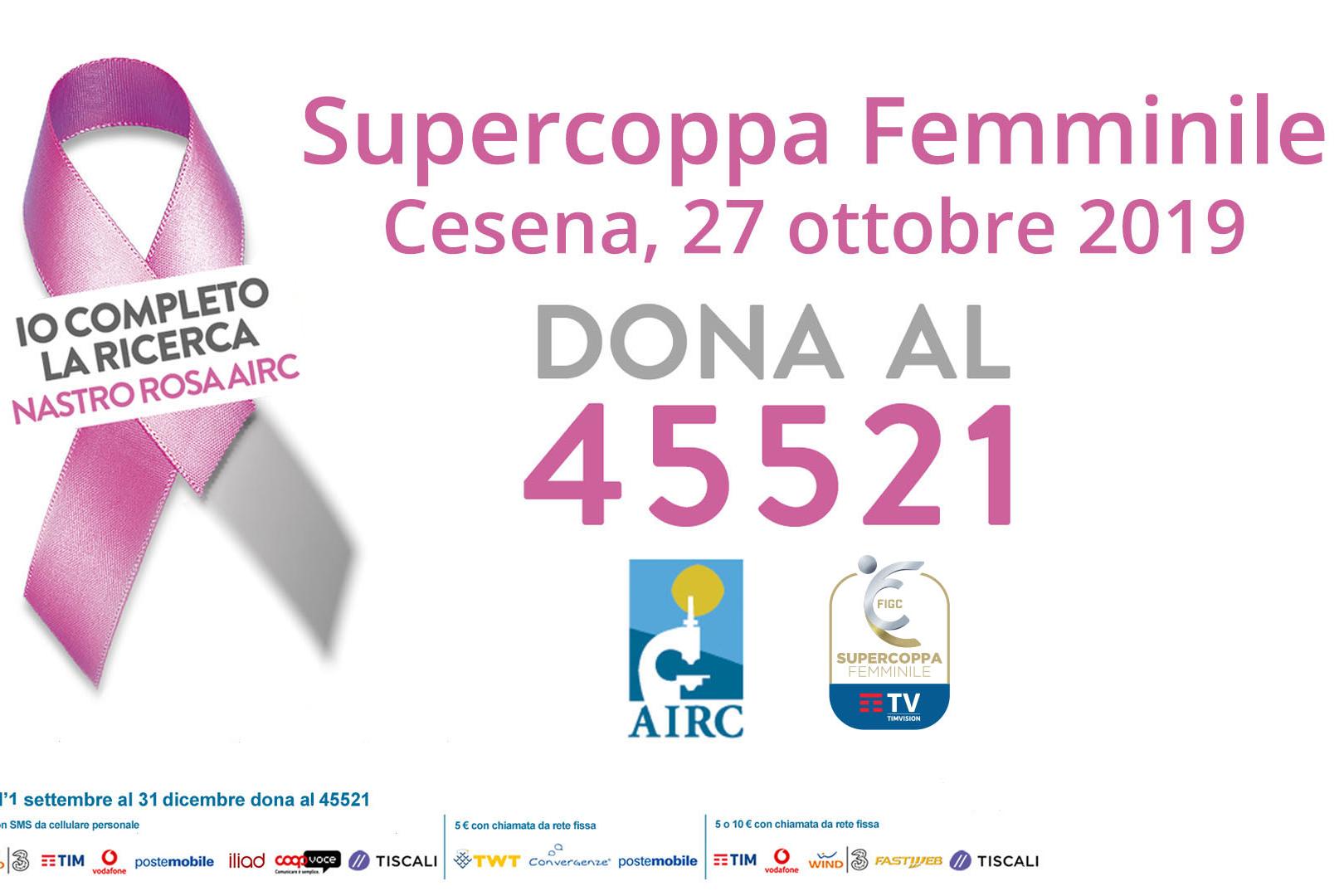 In occasione della Supercoppa Femminile, in programma domenica alle 12.30 all’Orogel Stadium-Dino Manuzzi di Cesena, Juventus e Fiorentina Women scenderanno in campo indossando sulle proprie maglie un nastro rosa, simbolo della campagna promossa da Fondazione AIRC per sostenere i ricercatori impegnati nella battaglia contro i tumori al seno.