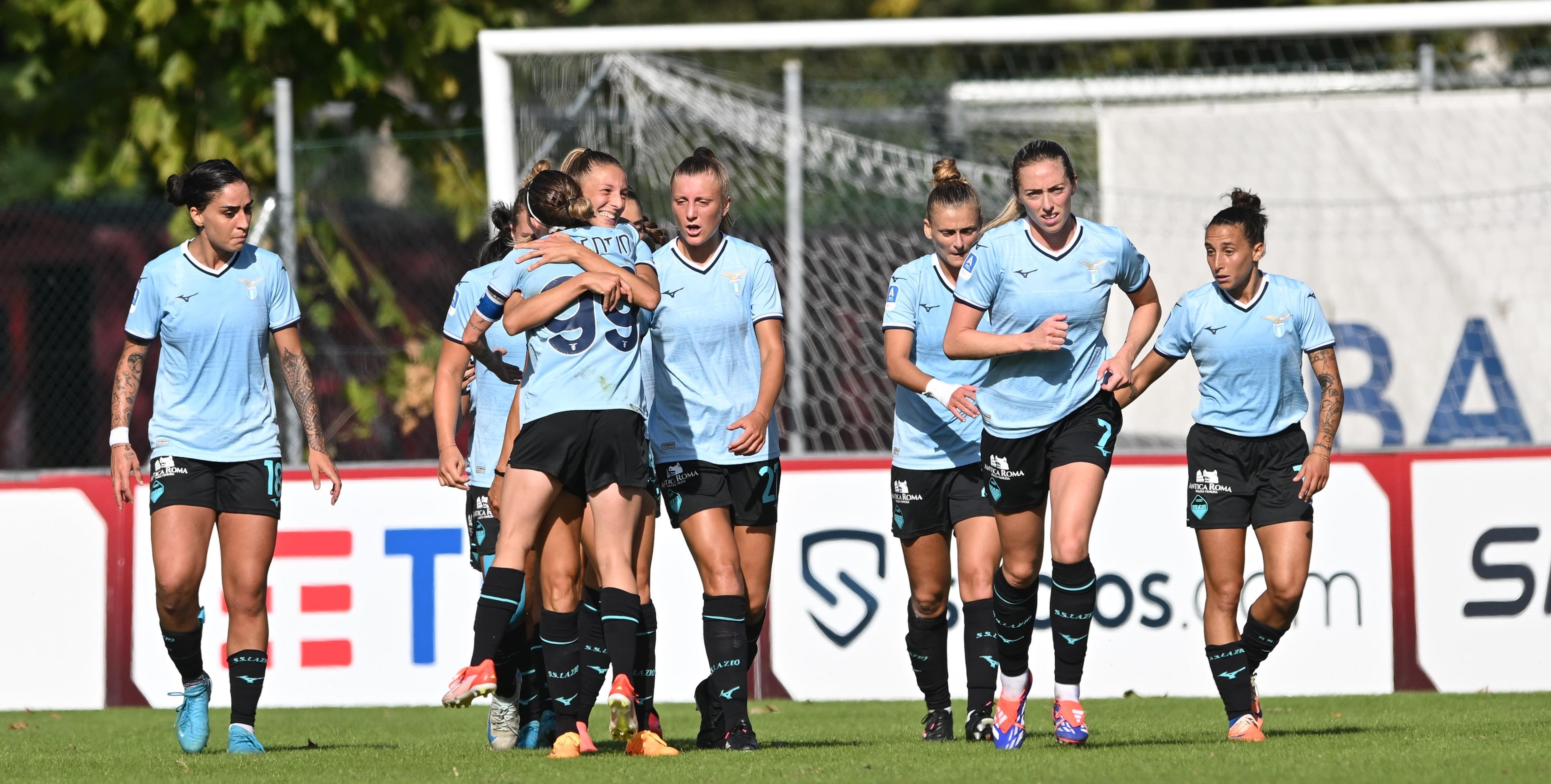 La seconda gara di questa domenica di Serie A ha visto impegnato il Milan contro la Lazio neopromossa, battuta 2-1 al Vismara. Nel primo tempo le rossonere si sono dimostrate subito propositive con Dompig che sulla fascia sinistra ha creato scompiglio con un cross a cercare le compagne nel cuore dell'area di rigore ma la difesa biancoceleste non si è fatta sorprendere. Poi ancora la numero 99 rossonera al 12' si è involata palla al piede verso la porta di Cetinja e ha provato la conclusione dal limite (centrale e parata). La partita poi si è accesa ulteriormente dopo poco più di venti minuti di gioco, con il contatto in area tra Soffia e D'Auria: il Milan ha solo accennato una protesta ma per l'arbitro non c'erano gli estremi per il calcio di rigore. Le rossonere comunque si sono dimostrate più vive che mai e a ridosso della mezz'ora hanno costruito un'altra grande chance: ancora Dompig, decisamente in giornata, ha cercato un appoggio per vie centrali e il pallone ha raggiunto Mascarello che tuttavia non è riuscita a inquadrare bene lo specchio della porta (complice anche una deviazione). Al 29', un altro episodio ha creato scompiglio nell'area rossonera: Visentin viene atterrata dopo aver saltato Piga ma anche in questo caso per il direttore di gara non c'erano gli estremi per il rigore. Ma il match del Vismara si è definitivamente acceso a ridosso dell'intervallo: al 42' sono state le ospiti a sbloccare il risultato con Visentin che ha capitalizzato al massimo il suggerimento di Piemonte. Al 45' poi è arrivata la replica praticamente immediata di Piga che ha presto riportato la situazione in parità con un colpo di testa sul quale Cetinja nulla ha potuto. Un primo tempo infinito si è chiuso con un'altra grande occasione per la Lazio: stavolta è stata Piemonte a girarsi in modo pericolo in area ma il suo tiro è stato troppo debole.