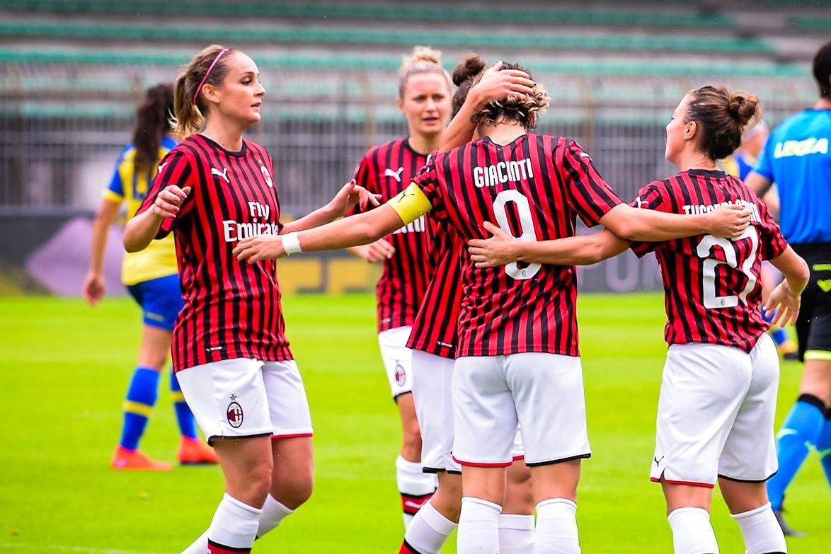 Nelle prime cinque gare della quinta giornata di Serie A, si conferma il Milan di Ganz, che domina il Tavagnacco, in 10 per l’espulsione di Veritti dal 40’ del primo tempo. Le rossonere centrano il quarto successo consecutivo e rimangono in testa alla classifica a punteggio pieno. Al "Brianteo" le padrone di casa passano in vantaggio alla mezz’ora grazie all’autorete di Kunisawa dopo una bella azione di Giacinti e raddoppiano nel finale con un colpo di testa della neo entrata Carissimi. Altro poker per la Roma di Betty Bavagnoli in casa dell’Hellas Verona. Le giallorosse vincono 4-0 in e centrano la terza vittoria consecutiva in campionato, senza nemmeno un gol subito nel parziale. All’"Olivieri" le capitoline sbloccano il punteggio dopo appena 3' con capitan Bartoli; la solita Giugliano sigla il raddoppio e al 29' Bonfantini realizza il tris. Le padrone di casa non riescono a reagire né durante la prima frazione di gioco né nella ripresa, e a quattro minuti dal termine del match, arriva anche la prima rete in maglia giallorossa per la danese Thestrup, attaccante classe '95 neo arrivata in casa Roma. Clamorosa rimonta della Fiorentina in casa del Sassuolo negli ultimi cinque minuti di gara. Le neroverdi si portano avanti al 79’ con Michela Cambiaghi, legittimando una prestazione solida e concentrata. Le viola non mollano e prima pareggiano con una punizione splendida di Bonetti e poi realizzano il 2-1 con la danese Janni Arnth Jensen, che in mischia trova la zampata vincente. Beffa per il Sassuolo e altro successo per le toscane, che salgono a nove punti in classifica. In coda primo successo e primi punti in questa Serie A invece per l’Empoli Ladies, che batte 4-1 l’Orobica (ora ultima in solitaria), mandando a segno quattro giocatrici differenti (Simonetti, Cinotti, Acuti e Petkova). Si sblocca anche il Florentia San Gimignano: 3-2 al Pink Bari grazie alla rete in avvio di Kelly e alla doppietta di Martinovic.