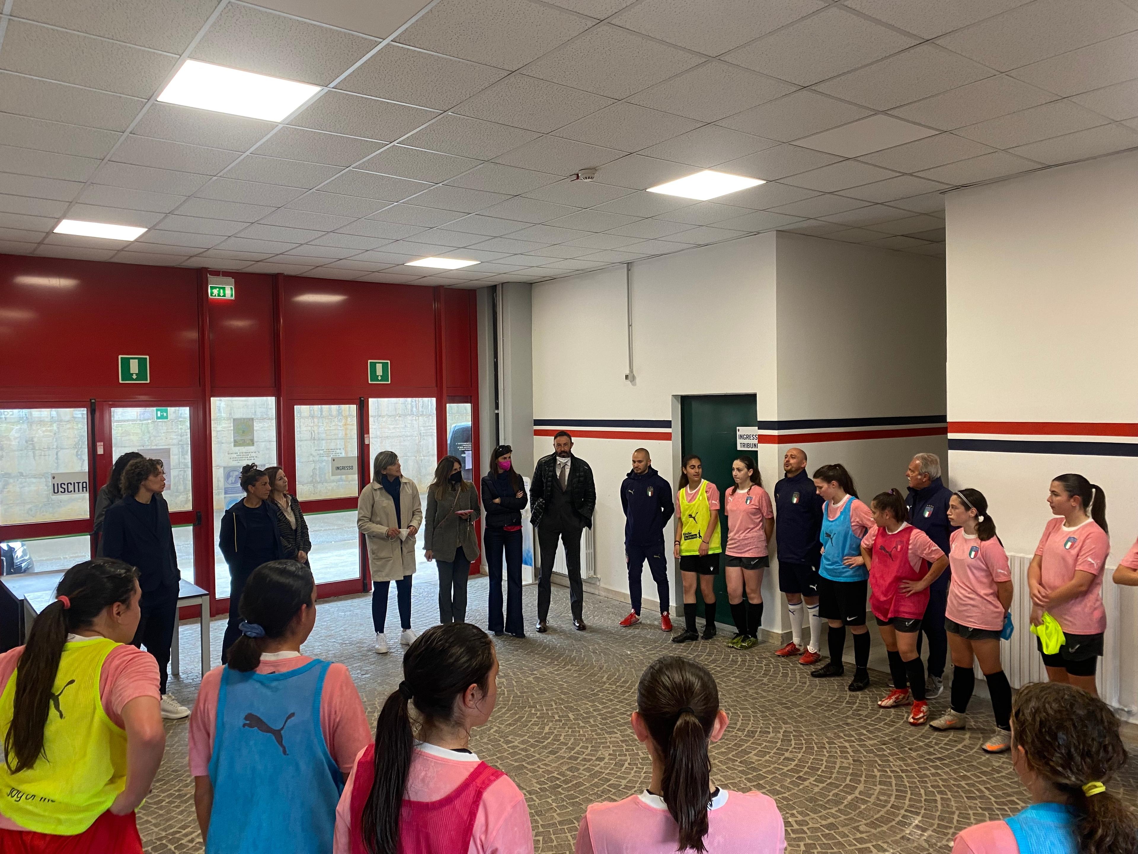 Pomeriggio iniziato con la visita del CT Bertolini e delle giocatrici della nazionale italiana e della Roma Femminile, Elisa Bartoli ed Elena Linari, presso lo Stadio Gran Sasso, durante la seduta di allenamento della Selezione Territoriale Under 15 Femminile.