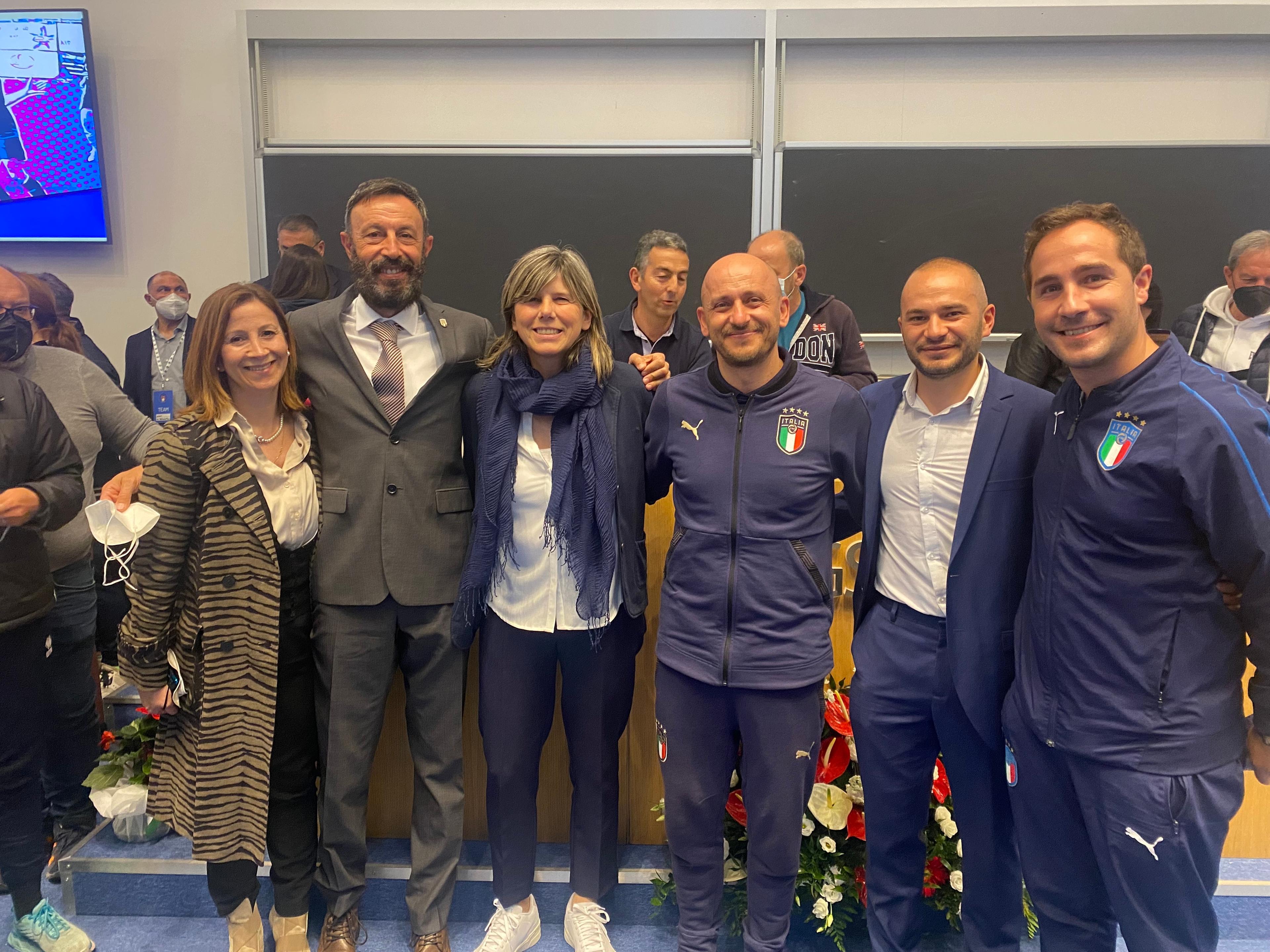 Dopo l'allenamento, le ragazze e lo staff hanno partecipato al convegno "Calcio femminile, per noi una questione di cultura…" organizzato dalla LND Abruzzo, nell’ambito delle iniziative realizzate per "L’Aquila Città Europea dello Sport 2022" nell’Auditorium del GSSI.