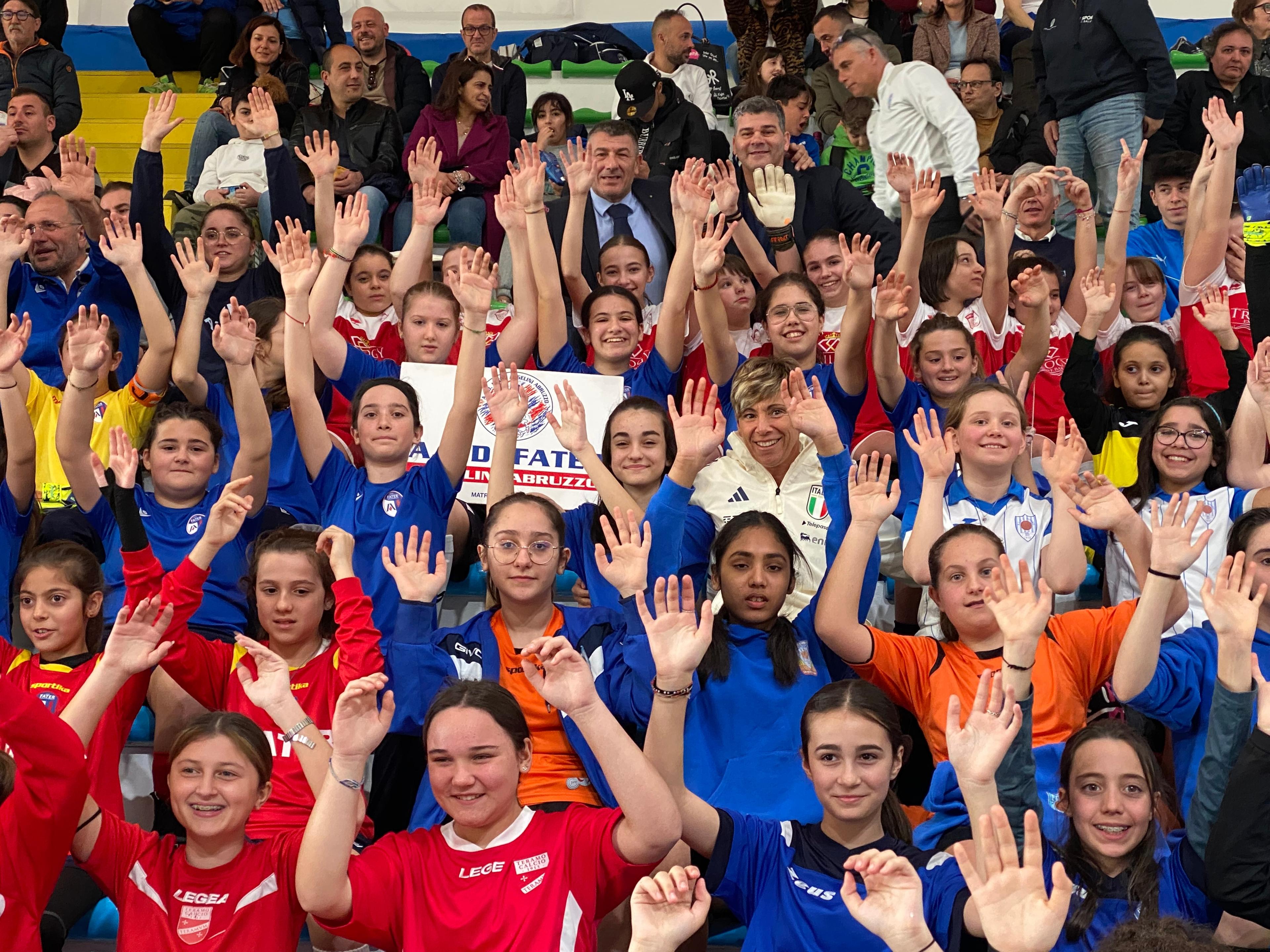 Sabato 18 Marzo, più di 100 le bambine delle 12 società abruzzesi che si sono affrontate in campo, incoraggiate dai numerosi genitori presenti, e poi hanno avuto la fortuna di abbracciare e cantare l’inno d’Italia con le giocatrici della nazionale futsal femminile.