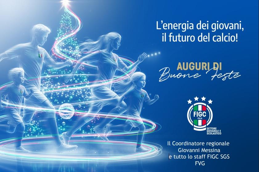 Il Coordinatore Federale Regionale Giovanni Messina e tutto lo staff della FIGC Settore Giovanile e Scolastico augurano buone feste a tutti i club del Friuli Venezia Giulia, ai loro dirigenti e soprattutto alle giovani calciatrici e giovani calciatori tesserati.