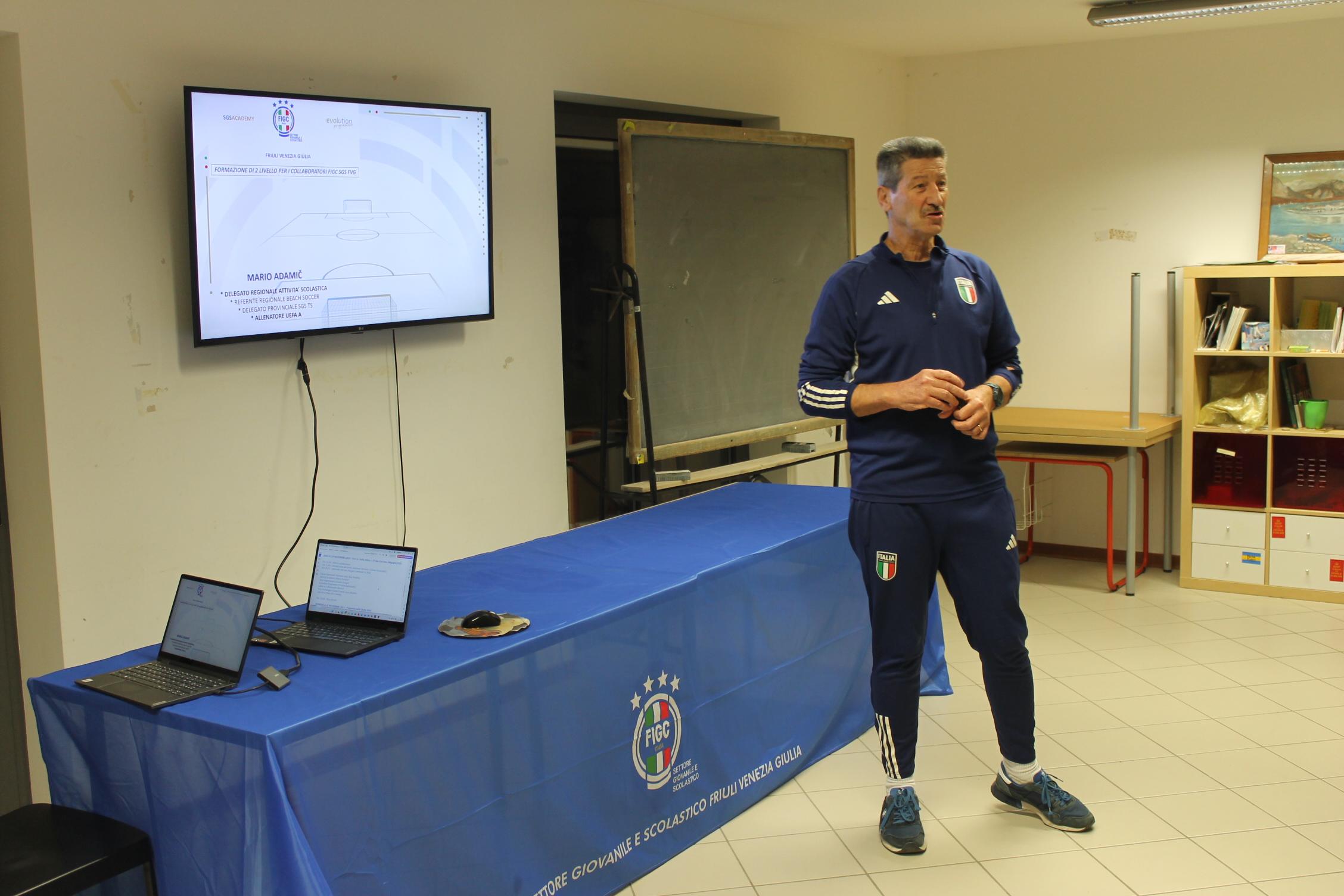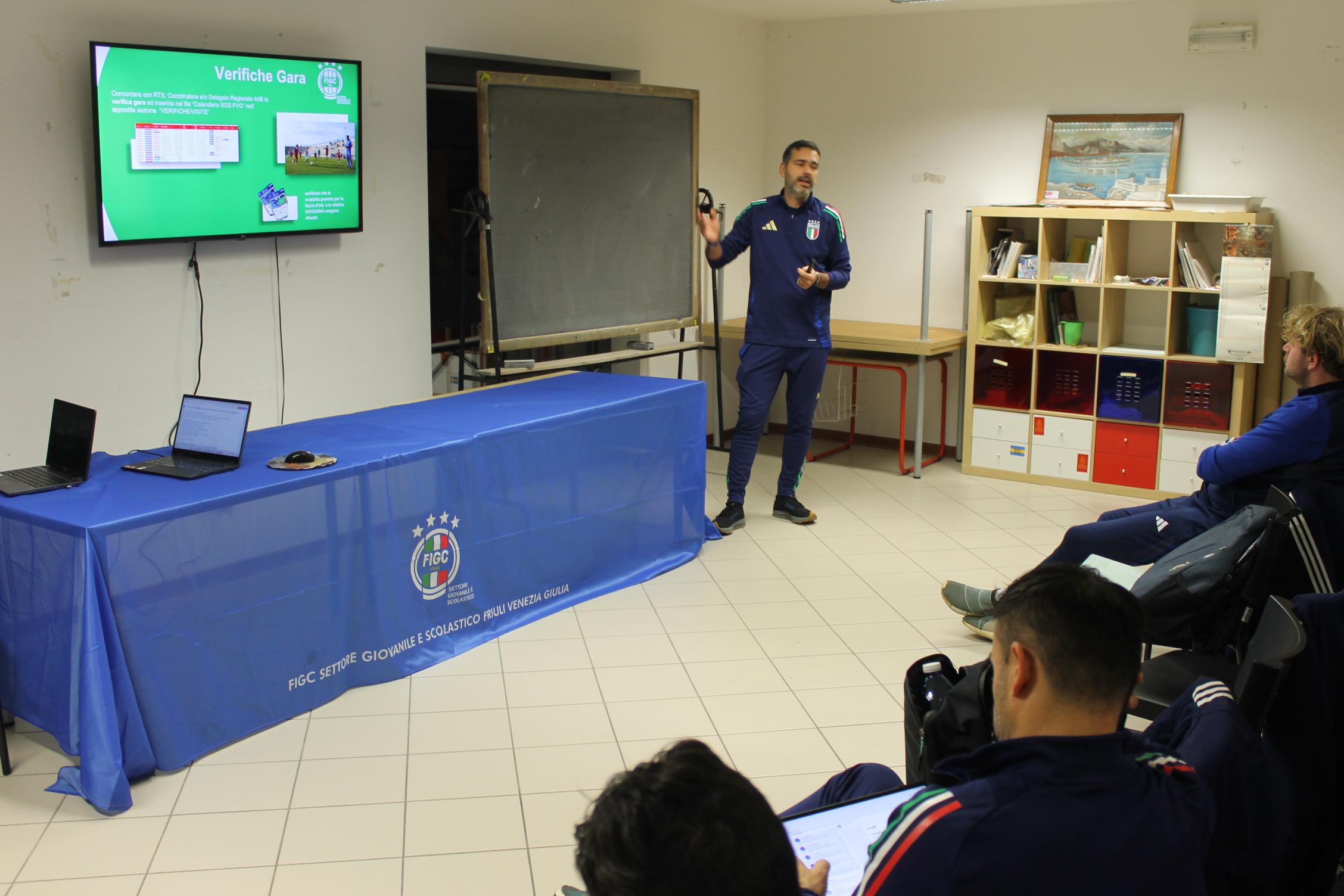 Il giorno 29 novembre a Ragogna (UD) e il 30 a Palazzolo dello Stella (UD) si è svolta la due giorni di formazione interna di 2° livello per i collaboratori della FIGC Settore Giovanile e Scolastico regionale. La formazione di 2 livello intende “riportare” nel Territorio la formazione di 3 livello che i vari Delegati regionali e Referenti di Area hanno svolto a Roma nei mesi di ottobre e novembre con il Settore nazionale. Nel dettaglio, sabato pomeriggio si è parlato delle progettualità del calcio femminile (Barbara Lesa e Massimiliano Petrella), dell’Attività Scolastica (Mario Adamic) e la gestione delle Verifiche Gara e Visite ai Club (Cristian Barazzutti). Domenica è stata la volta delle attività tecniche, prima con l’intervento di Stefano Florit (Responsabile dell’Area Metodologica dello Staff nazionale) con i giovani calciatori della SS Sangiorgina cat U11 ed a seguire con l’intervento sulle Modalità di Gioco per l’Attività di Base (Eric Iansig).