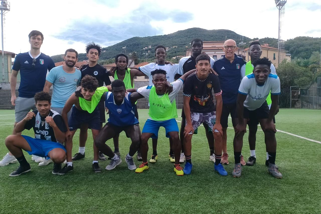 Nella nostra regione, il Delegato Regionale regionale della FIGC-SGS Prof. Pier Giorgio Baudinelli col collaboratore Stefano ha seguito fra non poche difficoltà logistiche il gruppo spezzino dei centri SAI locali.