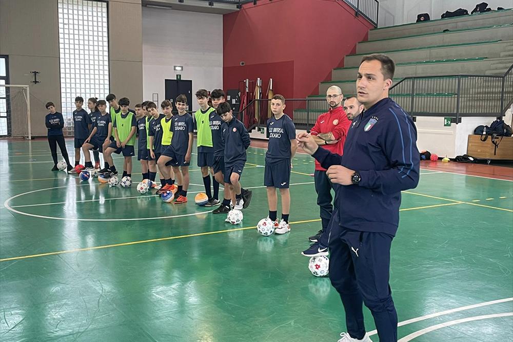 Il Workshop, tenuto da Alessandro Bagalà, tecnico federale e allenatore prima squadra Mantova Calcio a 5, è stato strutturato in due fasi distinte: una prima lezione teorica sulla metodologia dell’Evolution Program e sulla propedeuticità del calcio a 5 per il calcio a 11 come opportunità di crescita per il giovane calciatore e una seconda parte pratica, in collaborazione con Michael Cangiano (Delegato FIGC SGS Pavia e Lodi), in cui è stata mostrata una completa seduta di allenamento con un gruppo under 14 della Società ASD Universal Solaro.