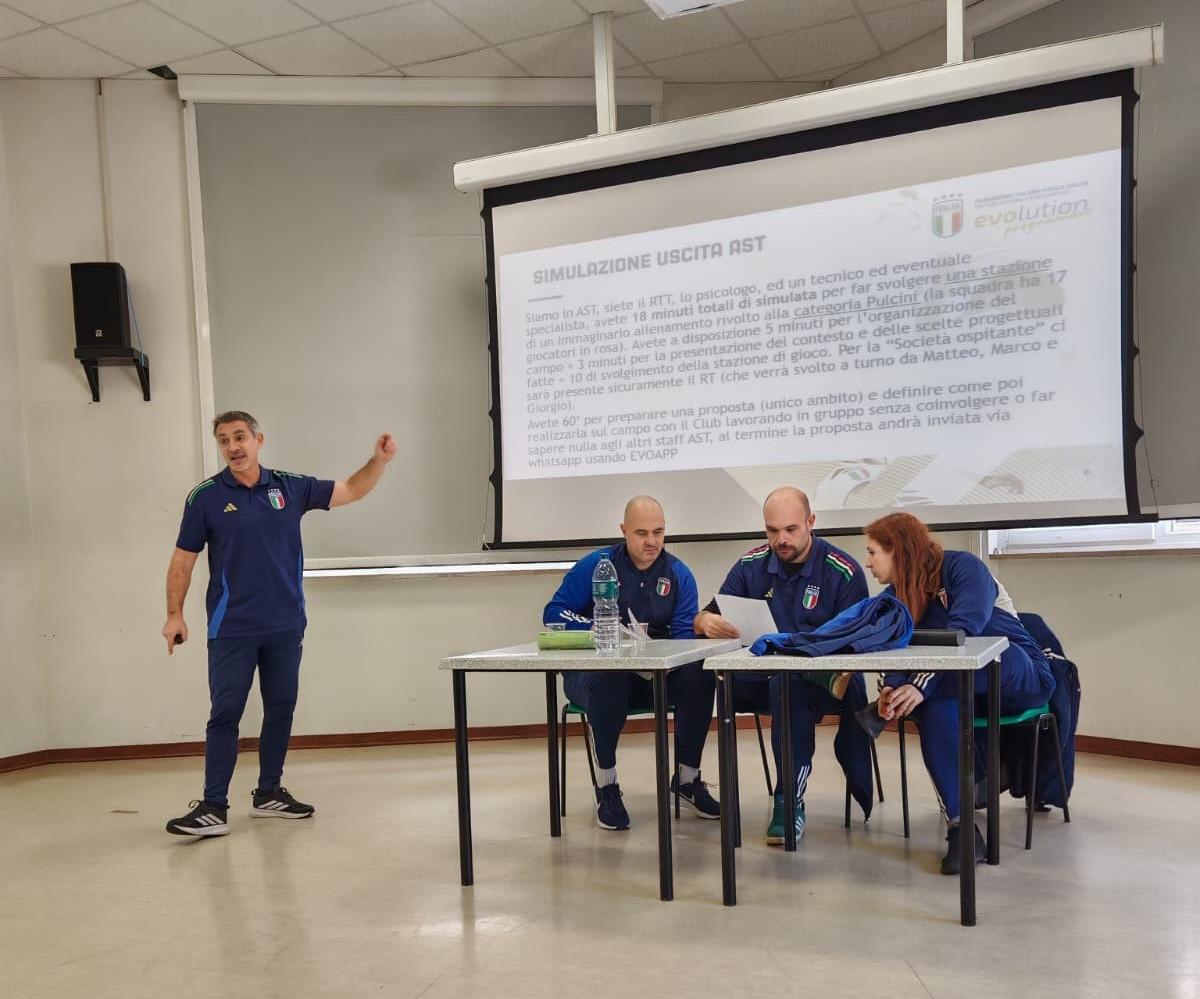 Prima dell'avvio delle attività in campo, la formazione in aula si è conclusa con l'intervento di Marco Lovati, Responsabile Tecnico Territoriale e Collaboratore Nazionale Area Talent, che ha presentato il TIPASS come strumento di riferimento per lo sviluppo del talento. Attraverso l'analisi dei video, Lovati ha coinvolto i colleghi in un confronto attivo, stimolando una riflessione condivisa.