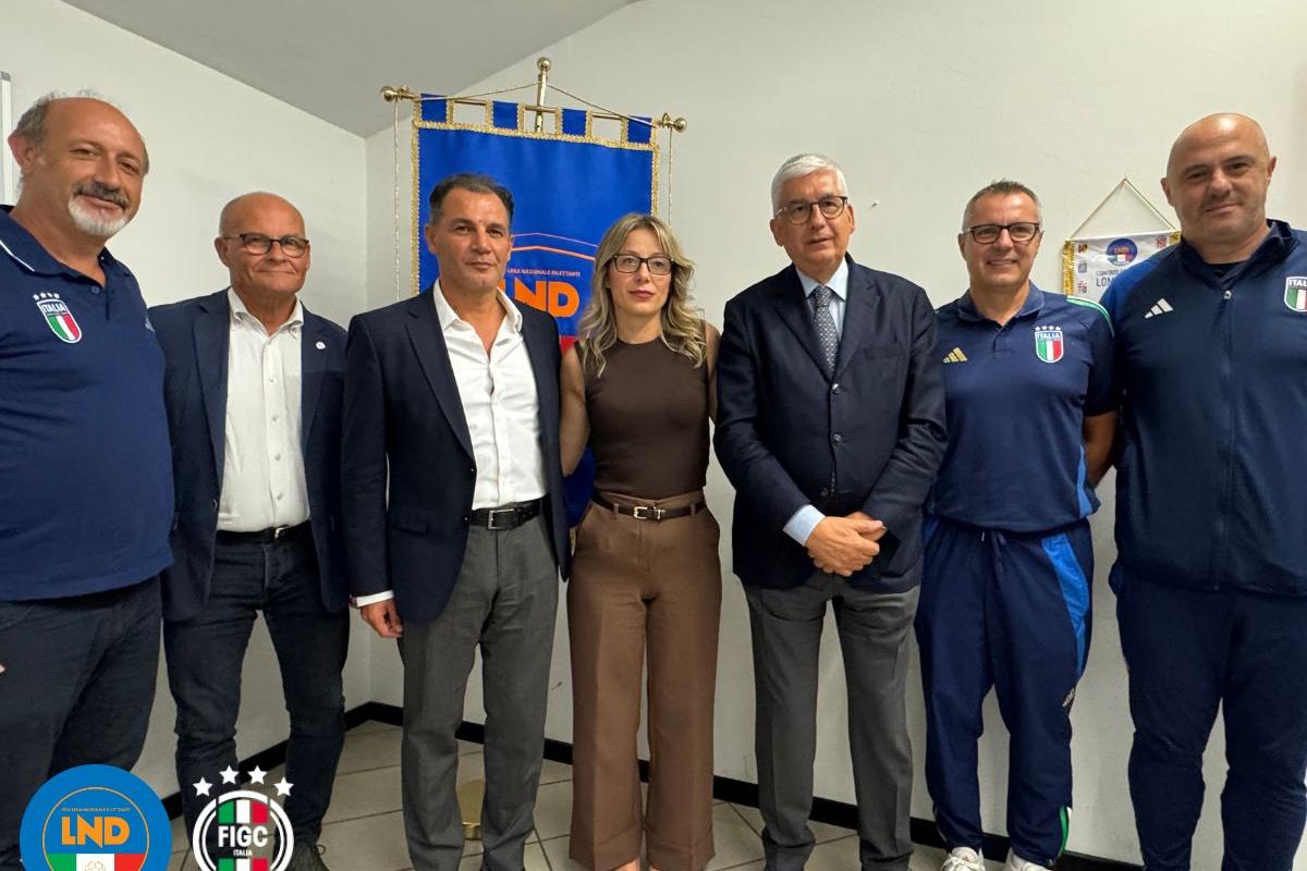 Si è concluso l'incontro tra il Presidente del Settore Giovanile e Scolastico FIGC Vito Tisci, accolto dal Coordinatore regionale SGS FIGC Mauro Spoldi e dal Presidente CRL LND Valentina Battistini.