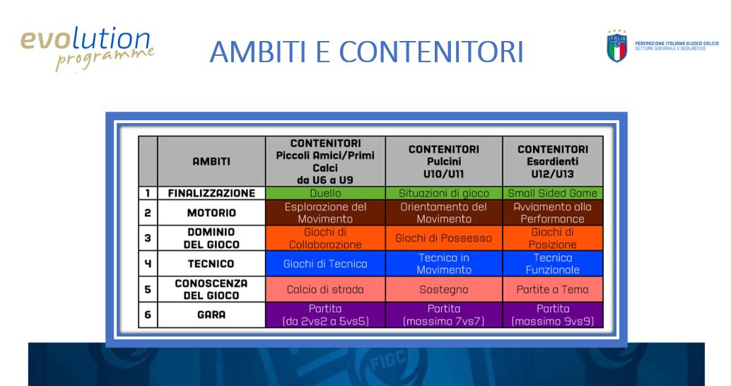 Ponendo degli interrogativi sull'obiettivo dell'Evolution Programme Mister Milella spiega che gli ambienti di apprendimento hanno fattori interconnessi tra loro: le regole e l'organizzazione; la qualità e i comportamenti del giocatore; le competenze e lo stile di conduzione dell'insegnante.