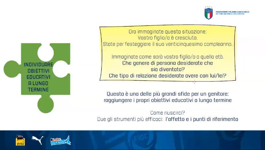 "Gli spunti che vi vogliamo dare sono i pezzi di un puzzle per costruire una buona relazione genitori-figli: individuare gli obiettivi educativi a lungo termine, far sentire affetto e vicinanza, fornire punti di riferimento".