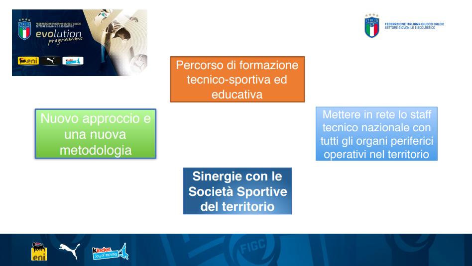 Ad aprire l'incontro è stato il Responsabile Tecnico Tommaso De Giorgi il quale dopo aver salutato e ringraziato i partecipanti ha spiegato il neo programma "Evolution Programme" promosso dal Settore Giovanile e Scolastico della FIGC in collaborazione con Ferrero Kinder Joy of Moving: "L'Evolution Programme è il Programma di Sviluppo Territoriale che ha come obiettivo primario quello di strutturare un percorso di formazione tecnico-sportiva ed educativa rivolta al territorio e a tutti i soggetti coinvolti nella crescita dei calciatori e delle calciatrici quali i tecnici, dirigenti, allenatori, genitori".