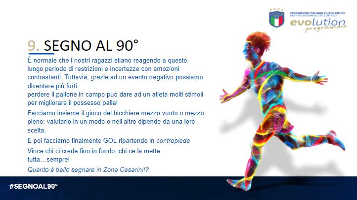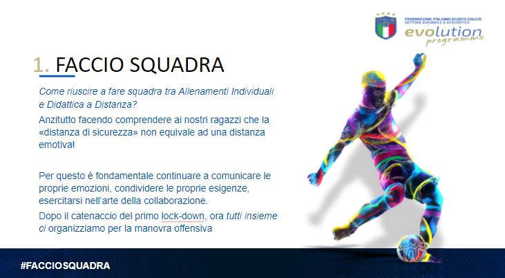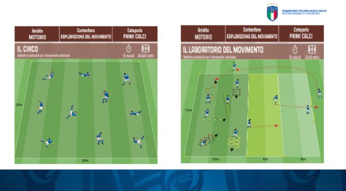 Il Tecnico Federale Leo Nuzzo mostra la struttura dell'allenamento individuale indicando alcune fra le proposte di pre-allenamento indicate dal Nazionale, gli accorgimenti pratici per il rispetto delle norme anti contagi, i supporti ad un'efficace programmazione della seduta come il reticolo, diversi esercizi per Piccoli Amici/Primi Calci e il percorso autonomo e ambito gara modificato.