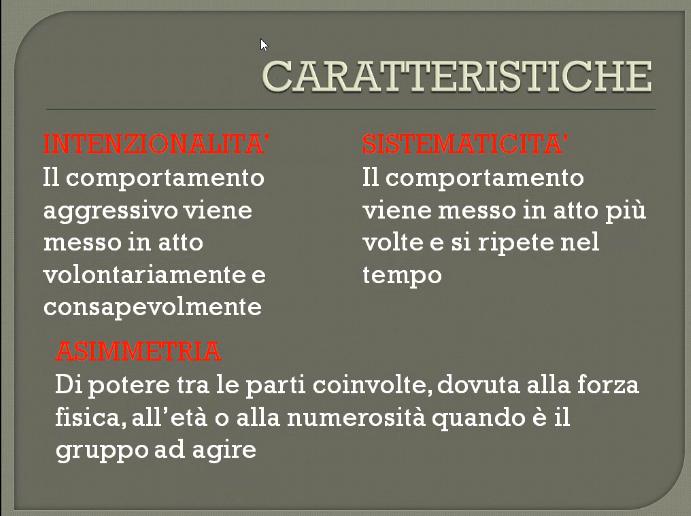 "Esistono due forme di bullismo diretto e indiretto - spiega la Psicologa - che presentano le caratteristiche di intenzionalità, sistematicità e asimmetria".