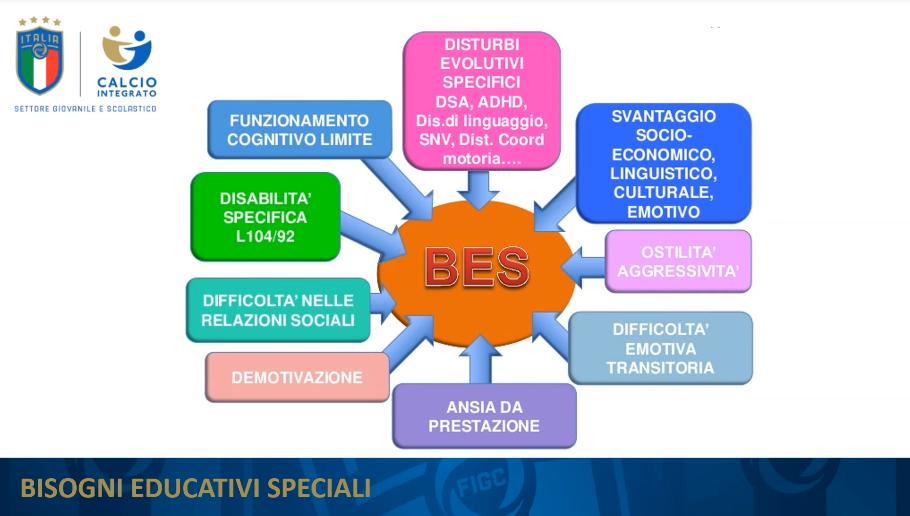 Ci si sofferma, inoltre, sull'acronimo "BES" ovvero "Bisogni educativi speciali" che riguardano bambini e ragazzi che hanno bisogno di una particolare attenzione dando degli strumenti, dei supporti per dare a tutti loro la giusta uguaglianza di opportunità perchè come disse Nelson Mandela 'Lo sport può creare speranza là dove prima c’era solo disperazione. Ha più potere dei governi nel rompere le barriere razziali. Irride ogni tipo di discriminazione', ricordando di considerare sempre prima la persona e poi la disabilità'.