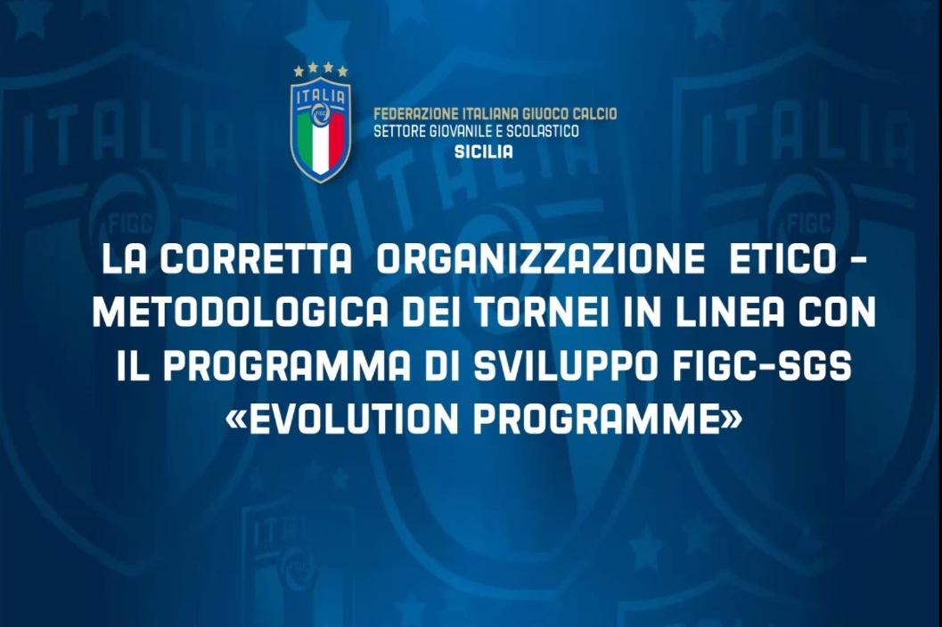 Un nuovo importante appuntamento ha caratterizzato l'attività dell'ufficio del coordinatore del Settore Giovanile e Scolastico Sicilia. Questo pomeriggio si è svolta, sulla piattaforma di teams, in modalità online, una riunione informativa aperta a tutte le società del territorio che intendono svolgere i "Tornei Autorizzati" nel corso della stagione sportiva 2022-23: il titolo dell’incontro è stato "La corretta organizzazione etico-metodologica dei tornei in linea con il programma di sviluppo FIGC – SGS "EvolutionProgramme".
