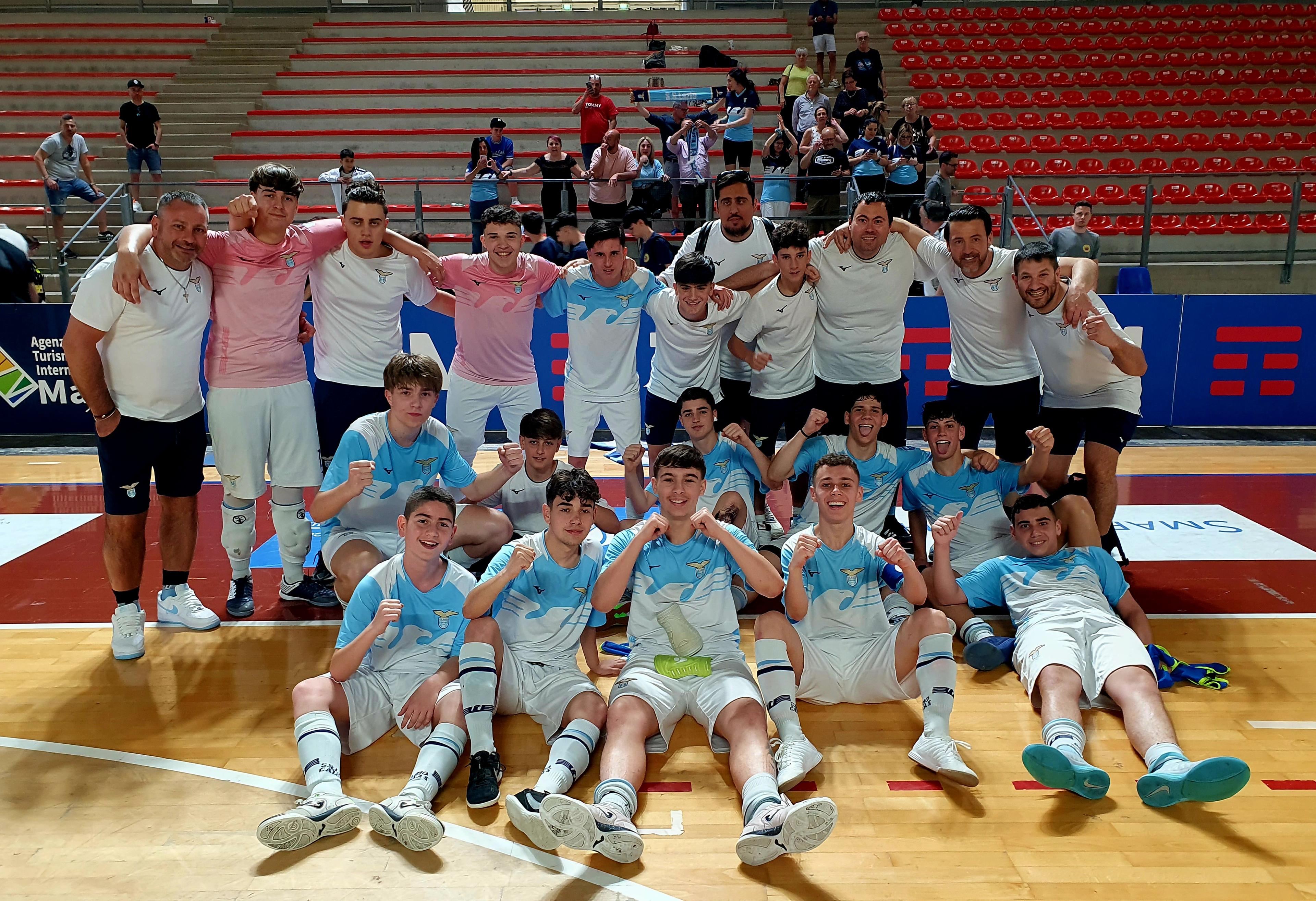 UNDER 17 La prima semifinale ha visto la vittoria della Lazio sul Marcianise. Un risultato (6-2) che, almeno nelle proporzioni, è dovuto alla scelta di Campanile di schierare già da inizio secondo tempo il portiere di movimento per recuperare il punteggio. A sbloccare il risultato è stato Pizzi con un destro all'incrocio sugli sviluppi di schema da rimessa laterale. E lo stesso numero 4, a meno di cinque minuti dalla fine del primo tempo, ha ricevuto un pallone centrale, si è girato benissimo e ha battuto ancora Gaetano Colella. Nella ripresa, il Marcianise ha provato a rimontare con l'uomo in più in fase di possesso, subendo però anche la terza rete con un destro dalla sua metà campo di Acchioni. I campani non hanno mollato, trovando l'1-3 con un destro da fuori di Ovidio, ma dopo un minuto la Lazio ha ristabilito le distanze con Di Michele, allungando ancora grazie al secondo gol di giornata di Acchioni, sempre con il Marcianise che aveva schierato il portiere di movimento, Giuseppe Colella: il numero 5 ha realizzato il gol del 2-5, ma Bianchetti ancora con la porta vuota ha chiuso definitivamente la partita.