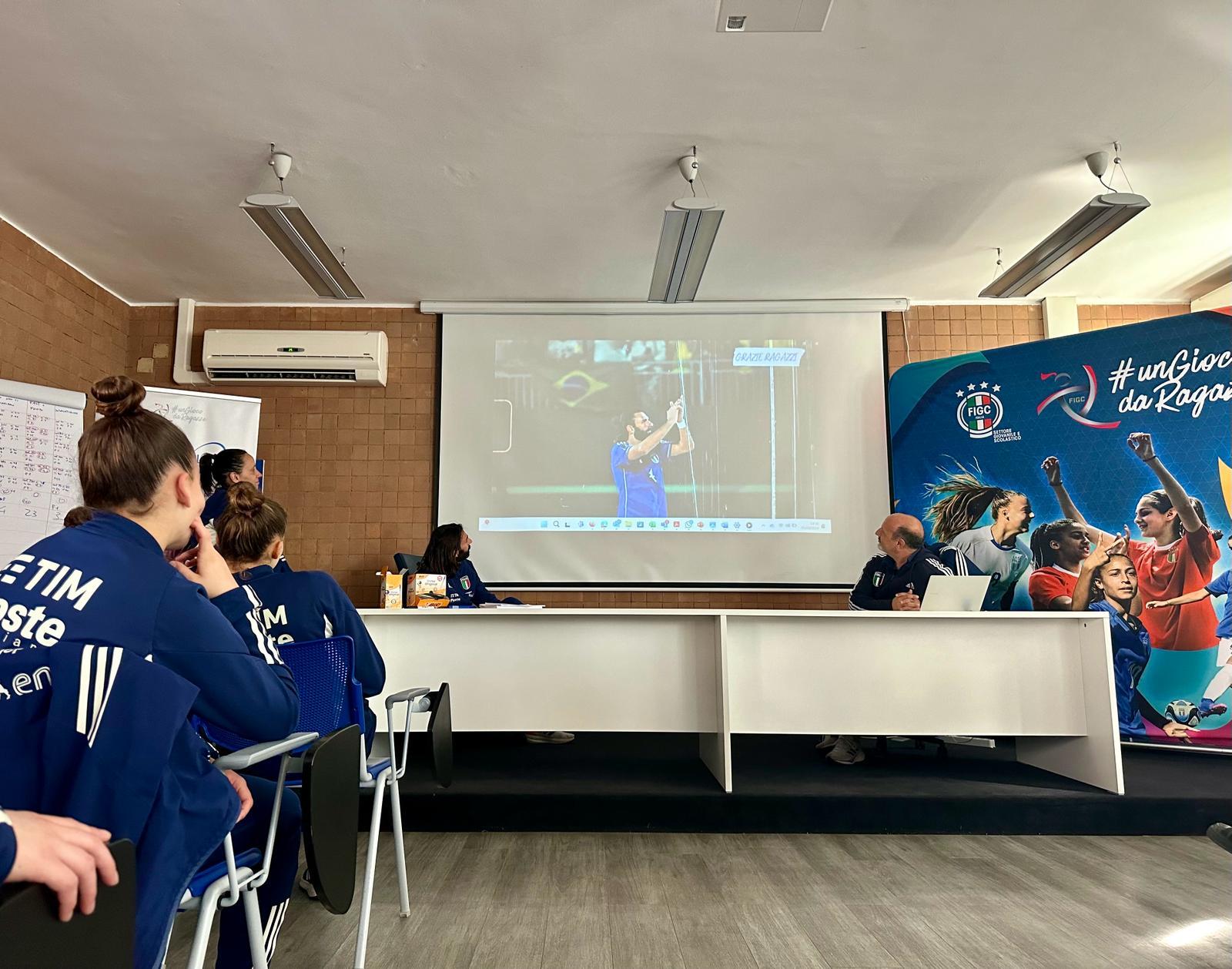 Presente e futuro azzurro si incrociano. All’interno del raduno del Calcio+15 in corso al CPO di Tirrenia, le giovani promesse del calcio femminile italiano – che domani saranno impegnate in amichevole contro la Nazionale Under 16 di San Marino, in quello che è a tutti gli effetti il primo confronto internazionale per la selezione relativa al progetto promosso dall’SGS in sinergia con il Club Italia – hanno avuto la possibilità di incontrare Gianmarco Genovali, uno dei perni della Nazionale italiana di beach soccer, reduce dal recente 2° posto al Mondiale di Dubai, nonché istruttore nei Centri Federali Territoriali e impegnato nello sviluppo del beach soccer in Toscana.