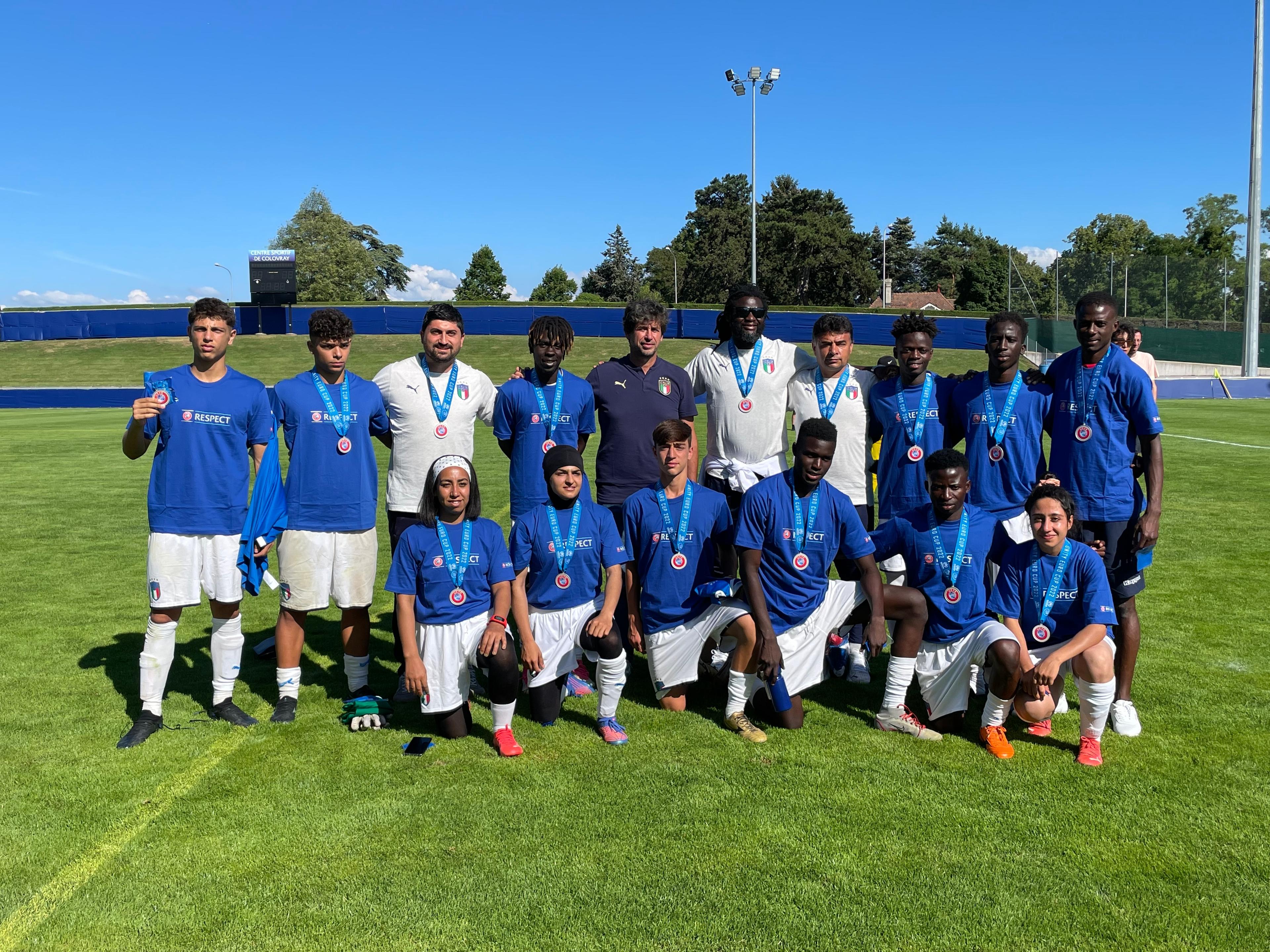 Terzo posto per il Team Italy all’edizione 2022 della Unity Euro Cup, la prima manifestazione internazionale dedicata ai rifugiati promossa da UEFA e UNHCR, disputata presso lo stadio di Colovray - sede UEFA di Nyon.