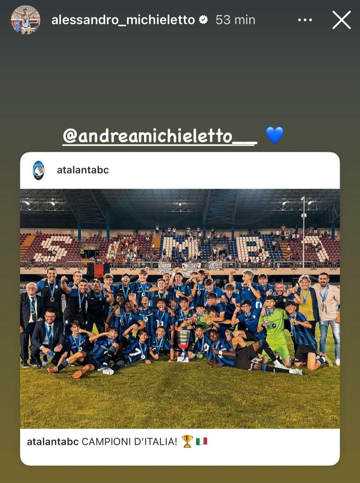 Dopo la vittoria del Mondiale di pallavolo del 2022, Alessandro andò anche a Zingonia a far visita alla società bergamasca e sul suo profilo ufficiale quest'oggi ha celebrato lo scudetto vinto dal fratello dedicandogli una storia. Un trionfo che chiude una stagione in cui Andrea ha collezionato 29 presenze e 14 reti, l'ultima delle quali è stata l'1-1 in finale contro il Milan (Atalanta-Milan 3-2) che ha permesso alla formazione Under 16 di Alessio Gambirasio di aggiudicarsi il primo titolo italiano nella storia del club nella categoria.