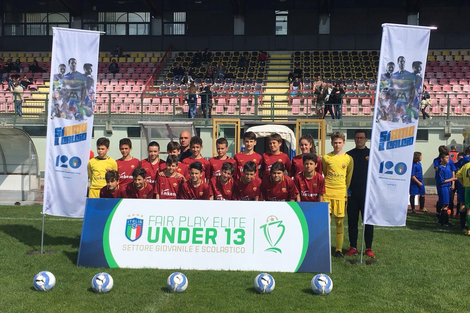 E' l'AS Roma la terza squadra ad accedere alla fase finale del torneo Under 13 Fair Play Elite in programma il prossimo 26 e 27 maggio a Formia. Al termine della tappa interregionale disputata presso il Centro Federale Territoriale di Castel di Sangro, la formazione capitolina ha avuto la meglio sulle rappresentanti di Abruzzo, Marche e Umbria: Virtus Ortona, Vigor Senigallia e Accademia Calcio Terni. I giovani giallorossi, che hanno chiuso in testa alla classifica generale grazie ai punti bonus previsti dal regolamento, ragigungono così l'Altopascio Calcio e il Calcio Sicilia all'ultimo appuntamento della manifestazione.