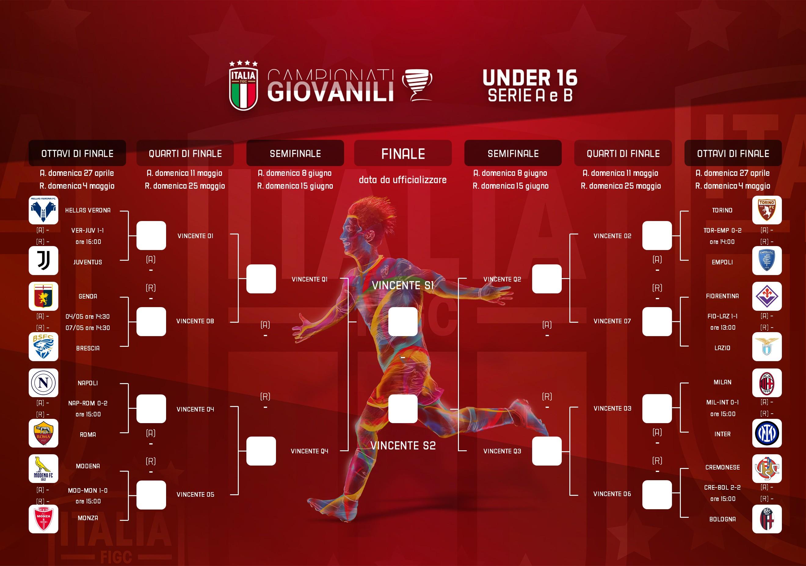 Infine, il Genoa di Francesco Valiani affronterà il Brescia di Ivan Massetti domenica (ore 14.30) al 'Begato 9' nel posticipo dell'andata degli ottavi di finale; il ritorno è in programma mercoledì 7 maggio (ore 14.30) a Rovato.