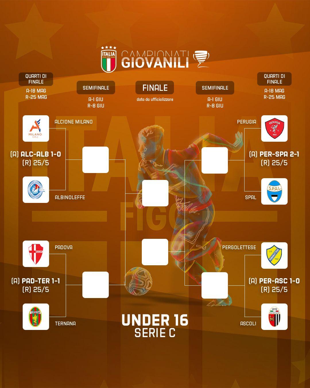 Grande prova dell'Alcione Milano che, grazie al gol partita di Marchesoni, si aggiudica la prima sfida contro l'Albinoleffe dei record e rimanda al match di domenica prossima l'esito di questa andata dei quarti di finale del campionato Under 16 di Serie C. Nel confronto tra bomber, andato in scena al 'Bertonico' di Crema, è Bisetto a siglare la rete decisiva che consente ai padroni di casa della Pergolettese di superare 1-0 l'Ascoli. Vittoria di misura anche per il Perugia, che sfrutta il fattore 'Renato Curi' e i gol di Ciappi e Babacar per imporsi 2-1 sulla SPAL. Pareggio per 1-1 tra Padova e Ternana (marcatori Miotto per i veneti e Pavese per gli umbri).