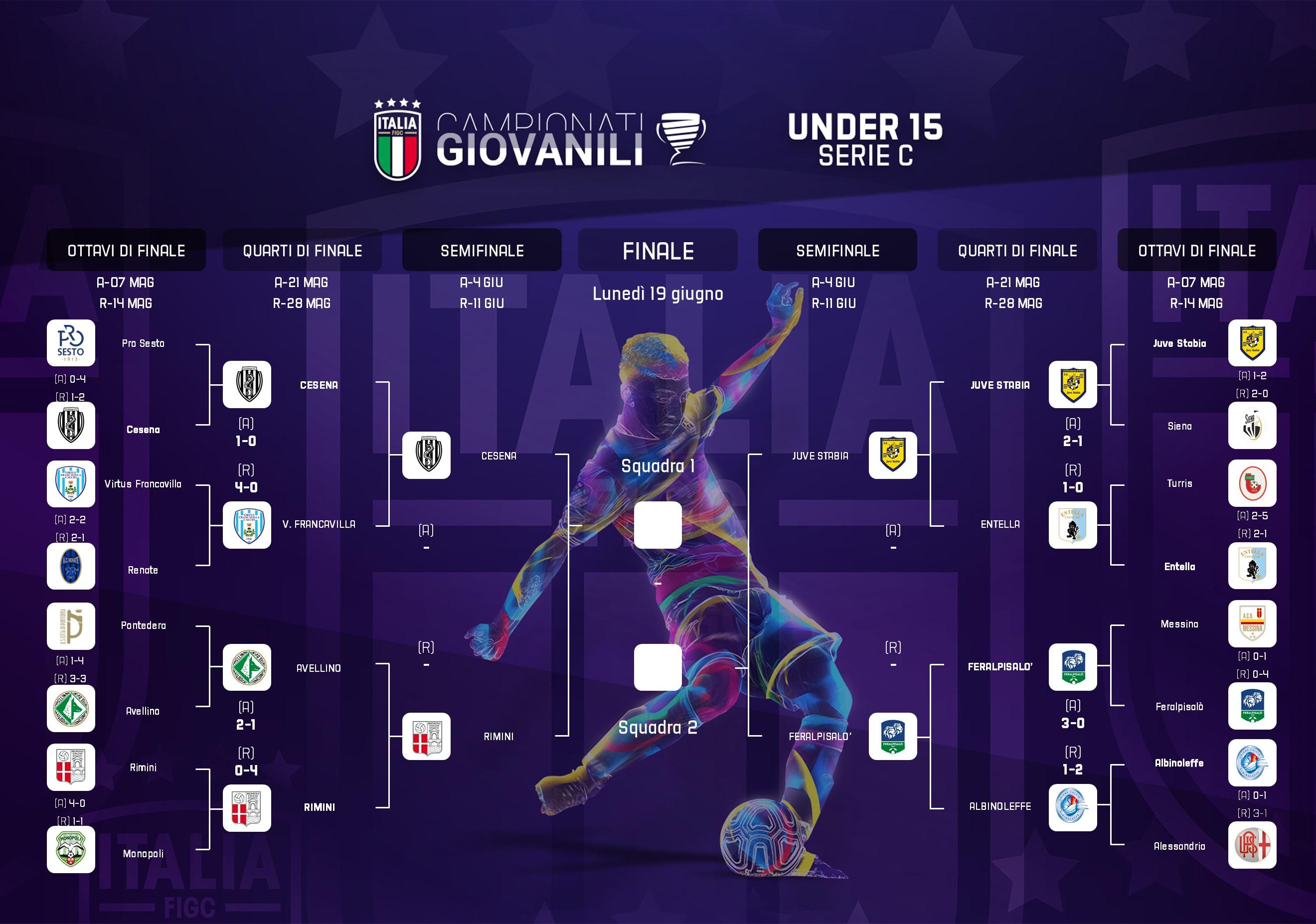 Nel weekend appena trascorso i campionati giovanili hanno visto andare in scena le gare di andata dei quarti di finale dell'Under 17 Serie C e le semifinali dell'Under 16 (successi esterni di Cesena e Vicenza) oltre alle gare di ritorno dell'Under 15, che hanno generato il quadro delle semifinali: spicca il derby romagnolo tra Rimini e Cesena, dall'altra parte del tabellone Juve Stabia e Feralpisalò.