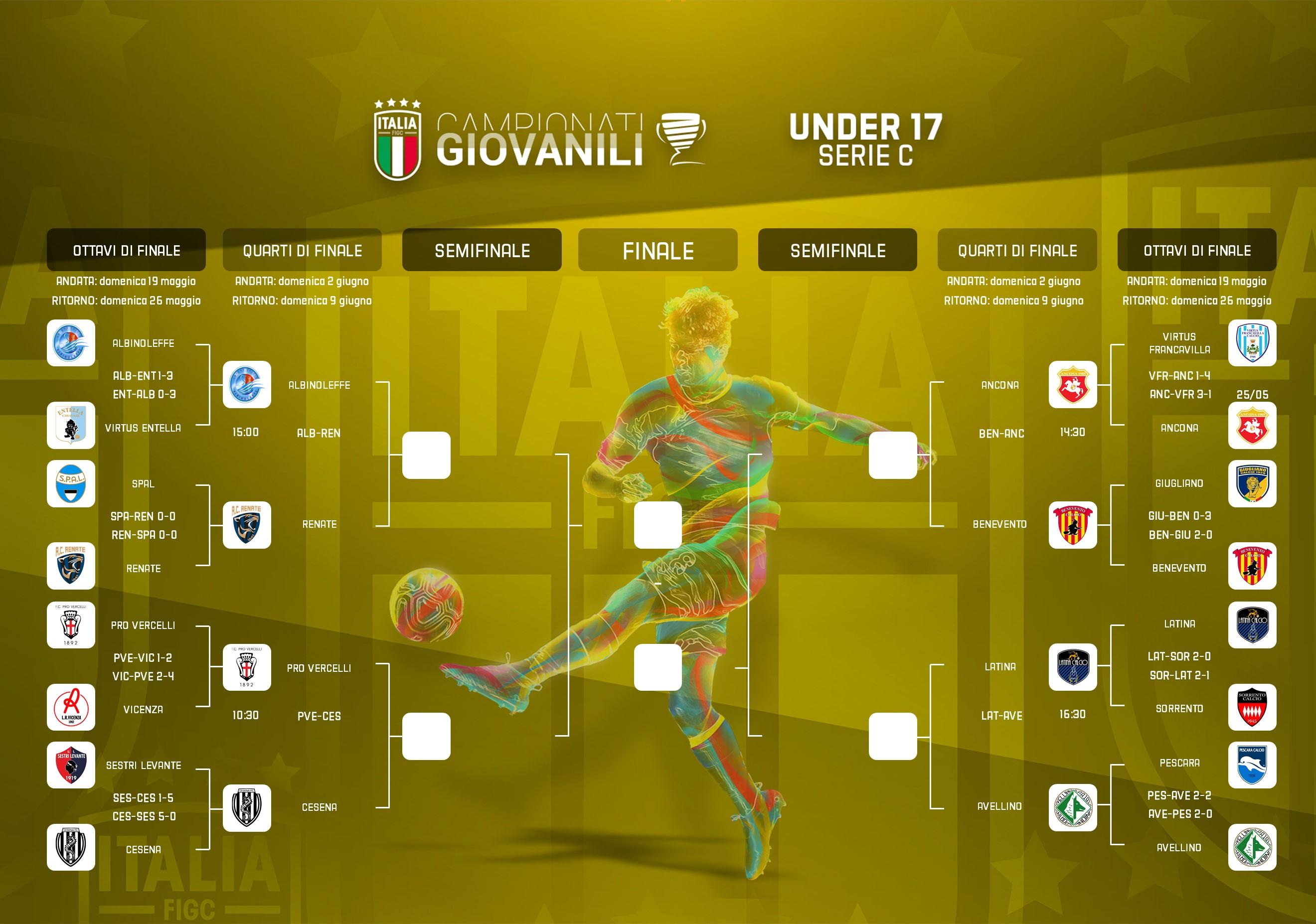 Al via il secondo turno a eliminazione diretta del campionato Under 17 che vedrà impegnate le otto migliori squadre della categoria, qualificate dopo aver superato gli ottavi di finale. Esordio casalingo per l'Albinoleffe guidato da Barzaghi e autore di una grande prova nel match di ritorno contro la Virtus Entella, che ha consentito ai bergamaschi di ribaltare la sconfitta dell'andata. La formazione lombarda dovrà vedersela con i corregionali del Renate, ancora imbattuti in casa e reduci dal doppio pareggio con la Spal, che ha regalato loro il pass per i quarti di finale in virtù del miglior piazzamento in classifica nella regular season. Grande attesa per la sfida tra Pro Vercelli e Cesena, con i piemontesi che hanno impressionato per la convincente eliminazione del Vicenza campione d'Italia in carica, e i romagnoli di Tamburini, forti di una rotonda doppia vittoria contro il Sestri Levante, nonché di una stagione da 115 gol. Interessante la sfida tra Benevento e Ancona, già avversarie nel girone C e qualificate grazie ai rispettivi successi con Giugliano e Virtus Francavilla. Chiude il quadro dei quarti l'incontro tra il Latina del bomber Di Giovannantonio, che ha eliminato il Sorrento, e l'Avellino della coppia gol Baldari-D'Onofrio, che ha superato gli ottavi dopo la vittoria sul Pescara.