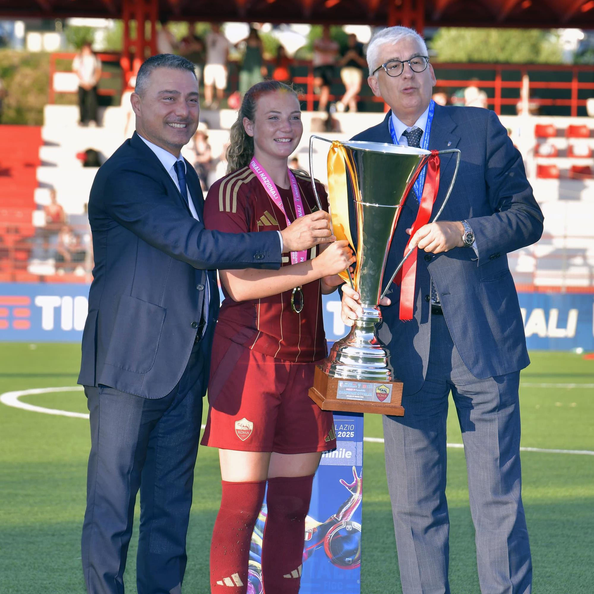 Roma campione. Allo Stadio Comunale 'Roberto del Bianco' di Anagni, le ragazze di Alessandro Di Martino hanno conquistato il secondo scudetto della loro storia battendo 2-0 il Milan di Fabio Treccani nella finale del Campionato Nazionale Under 17 Femminile. Un successo che bissa quello di due anni fa, sempre contro le rossonere, allora superate ai rigori (Roma-Milan 5-3 dtr, 27 giugno 2023). A decidere il match sono state le reti di Benedetta Parente al 45'+2 e di Asia Mascenti all'88'. Con questo trionfo cala il sipario sulle Finali Giovanili TIM, andate in scena dal 7 al 30 giugno nel Lazio.