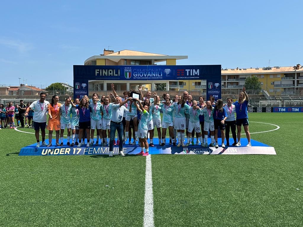 Dopo due scudetti nel maschile, ecco il primo nel femminile. La Roma è la grande protagonista delle Finali Giovanili TIM in corso nelle Marche. La squadra di Priscilla Del Prete ha conquistato il tricolore nella categoria Under 17 femminile, superando ai tiri di rigore il Milan, dopo l'1-1 alla fine dei tempi supplementari. Per il settore femminile giallorosso è il terzo scudetto stagionale dopo quelli della prima squadra e della Primavera. Quello Under 17 arriva invece ai danni della squadra che si presentava a queste finali da campione in carica.