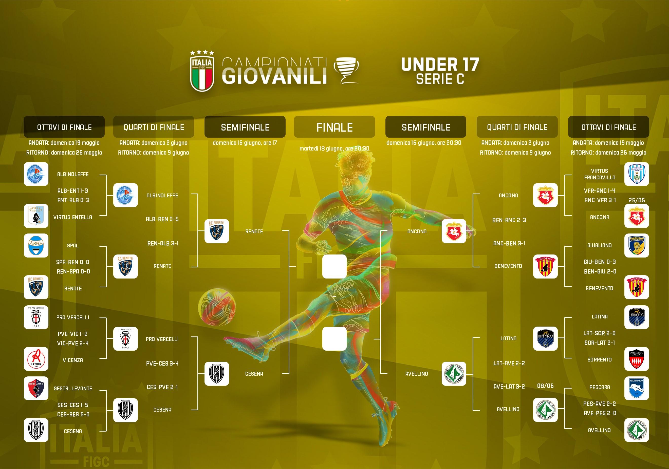 Sono Renate-Cesena e Ancona-Avellino le semifinali della fase finale a 4 del campionato Under 17 di Serie C, che andranno in scena domenica 16 giugno rispettivamente allo stadio della Vittoria di Tolentino (ore 17) e al Riviera delle Palme di San Benedetto del Tronto (ore 20.30).