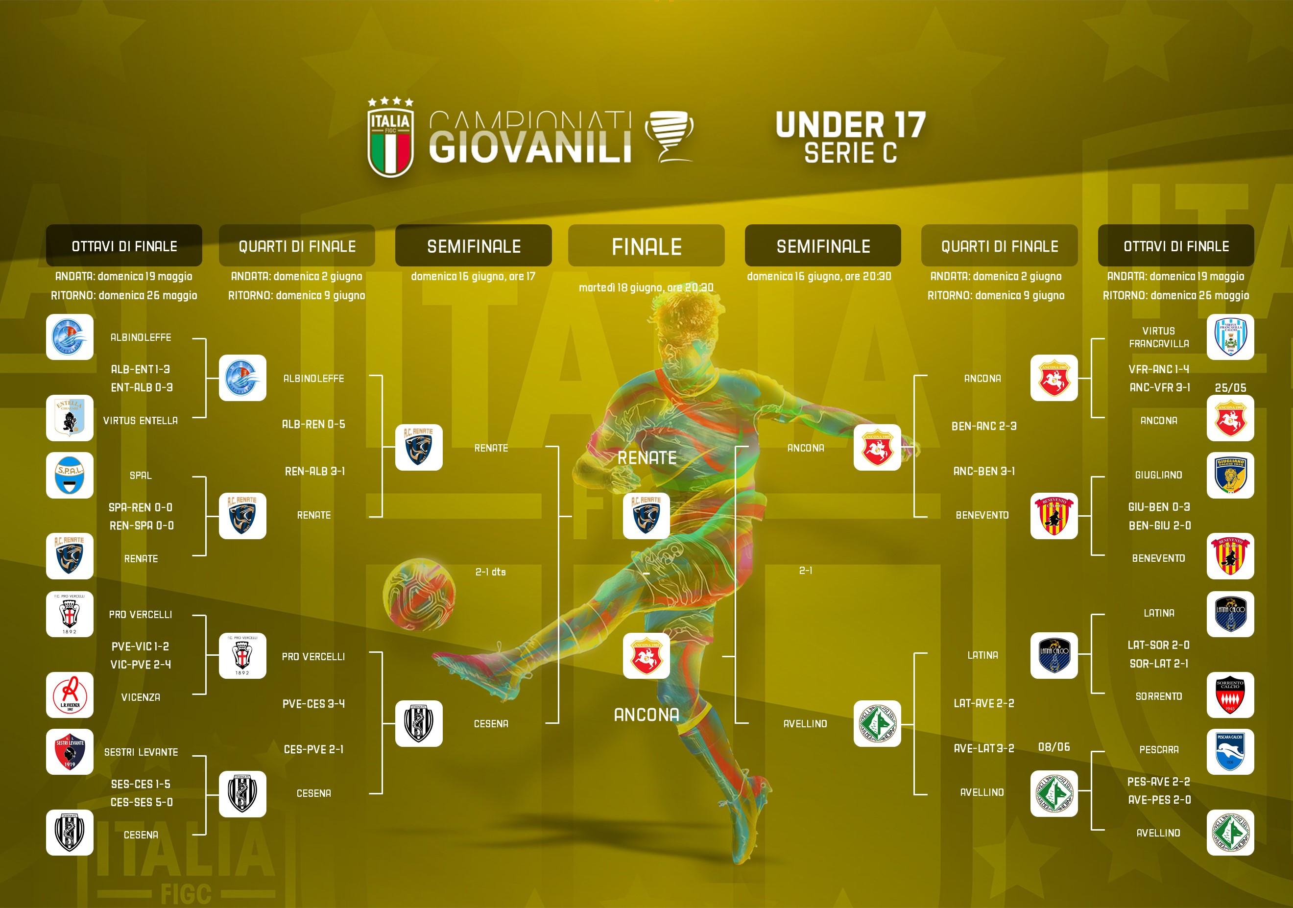 Due grandi storie di calcio, per motivi diversi, ma entrambe accomunate da un unico obiettivo: il sogno di vincere lo scudetto. Dopo le semifinali disputate ieri, Renate e Ancona sono le finaliste del campionato Under 17 Serie C e martedì 18 giugno alle ore 20 allo stadio Riviera delle Palme di San Benedetto del Tronto (gara trasmessa in diretta su DAZN e Vivo Azzurro TV), si affronteranno per conquistare il titolo 2023/2024. In ottemperanza al provvedimento del Prefetto di Ascoli Piceno, che ha disposto l'inibizione della distribuzione al pubblico dei biglietti. All'impianto potranno accedere esclusivamente il personale di servizio, gli ospiti della FIGC e i media accreditati.