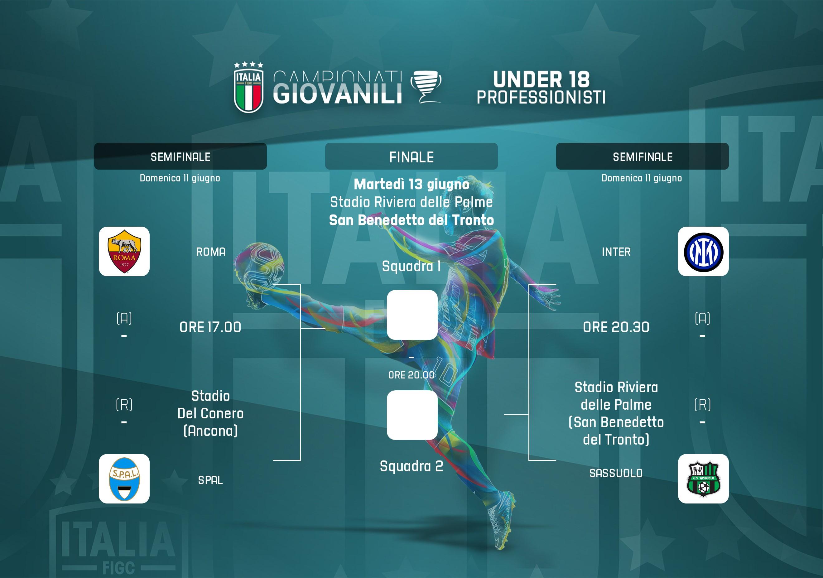 Tutto pronto per l'inizio delle Finali Giovanili TIM che domani, domenica 11 giugno, prenderanno il via con la fase finale a 4 dell'Under 18 Professionisti: Inter, Roma, Sassuolo e i campioni in carica della Spal, i nomi delle protagoniste che, nelle Marche, si contenderanno il titolo italiano.