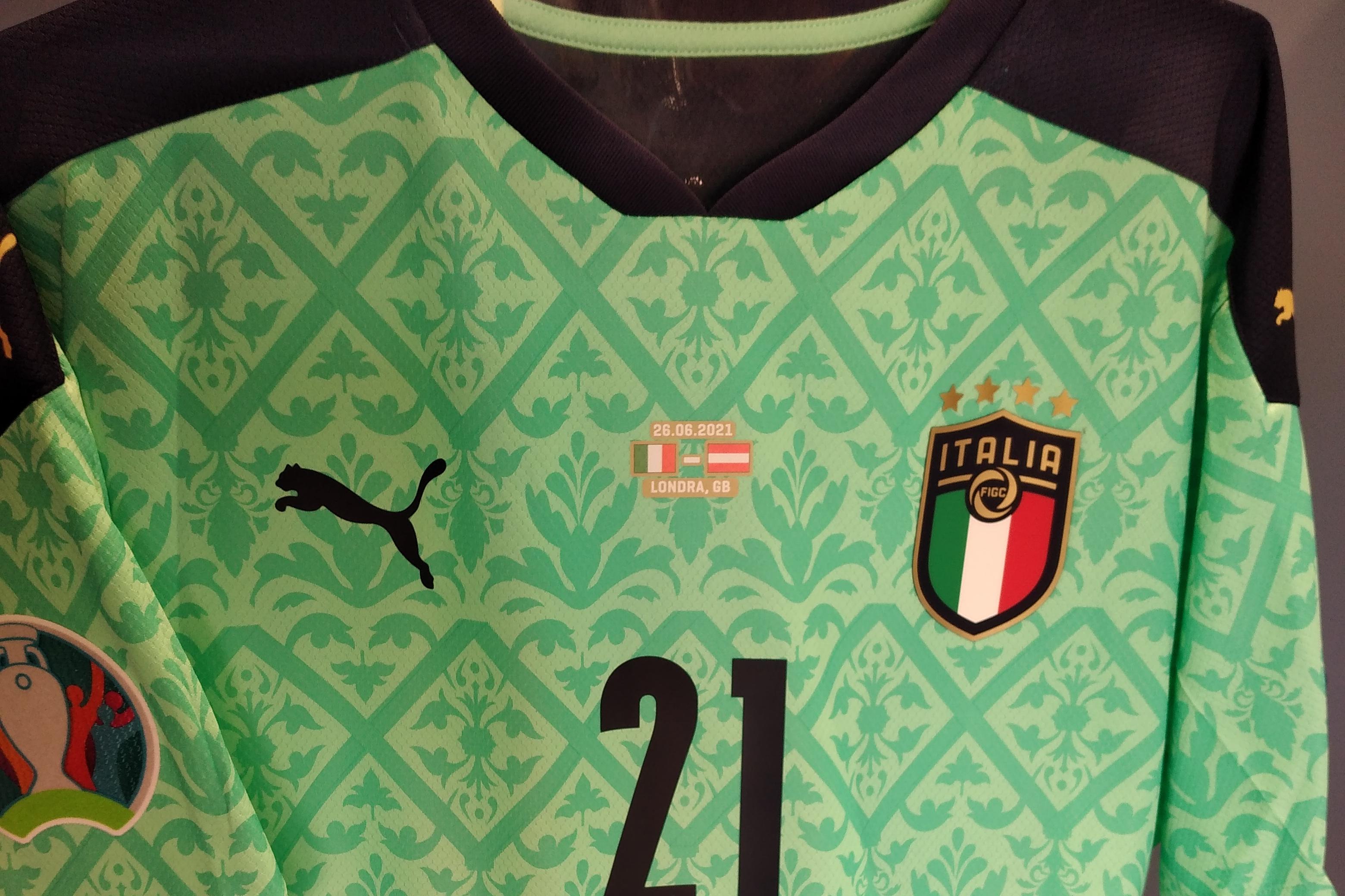 E’ una maglia che ha più significati. E’ arrivata al Museo del Calcio di Coverciano e ha trovato posto in bacheca. E’ quella indossata da Gianluigi Donnarumma, nella sfida con l’Austria, dello scorso 26 giugno, che ha portato la Nazionale di Roberto Mancini ai Quarti di finale di Uefa Euro 2020.