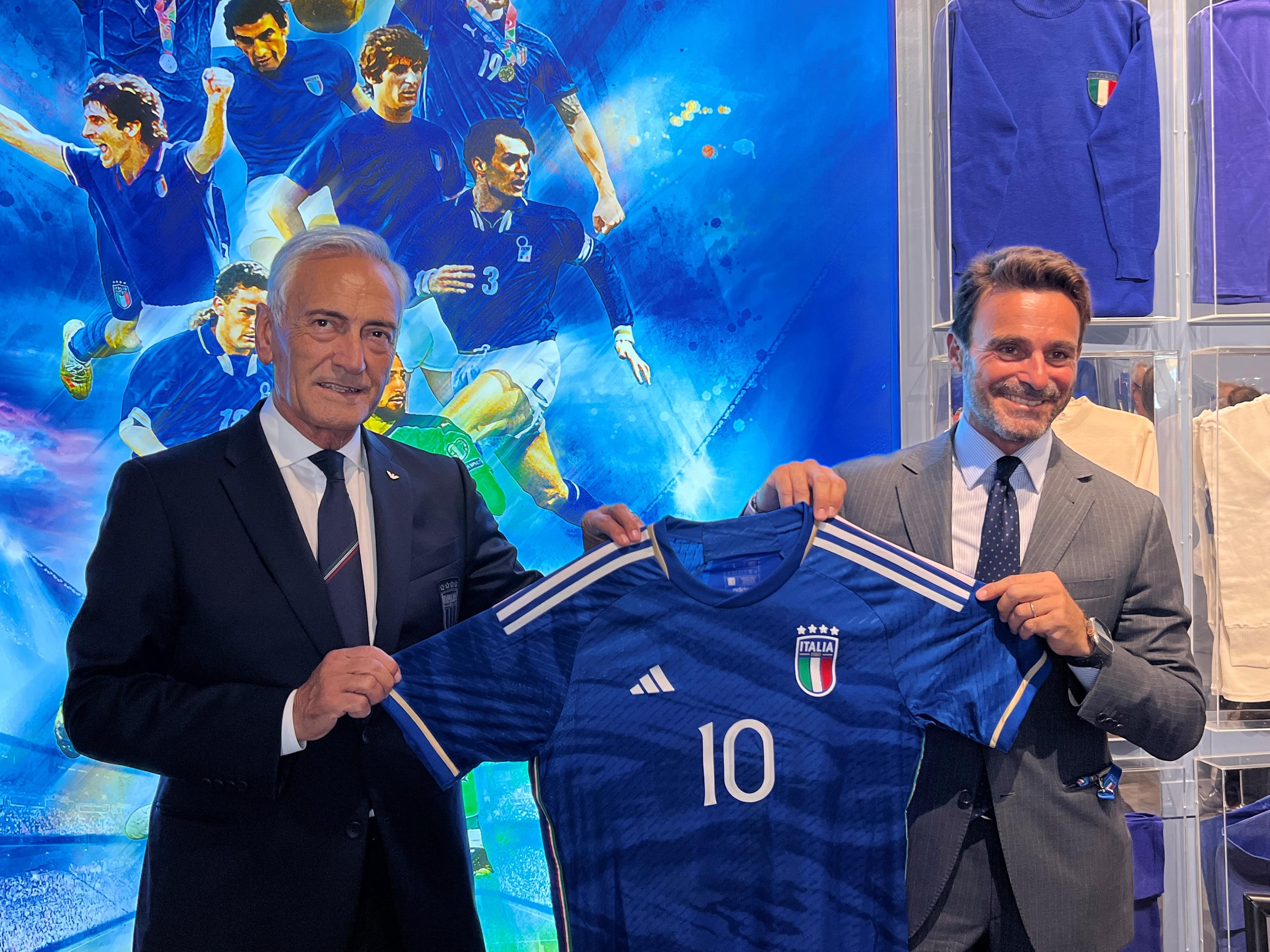 Nella foto all'interno dell'articolo: il presidente Gravina omaggia Machetti con la maglia della Nazionale numero 10