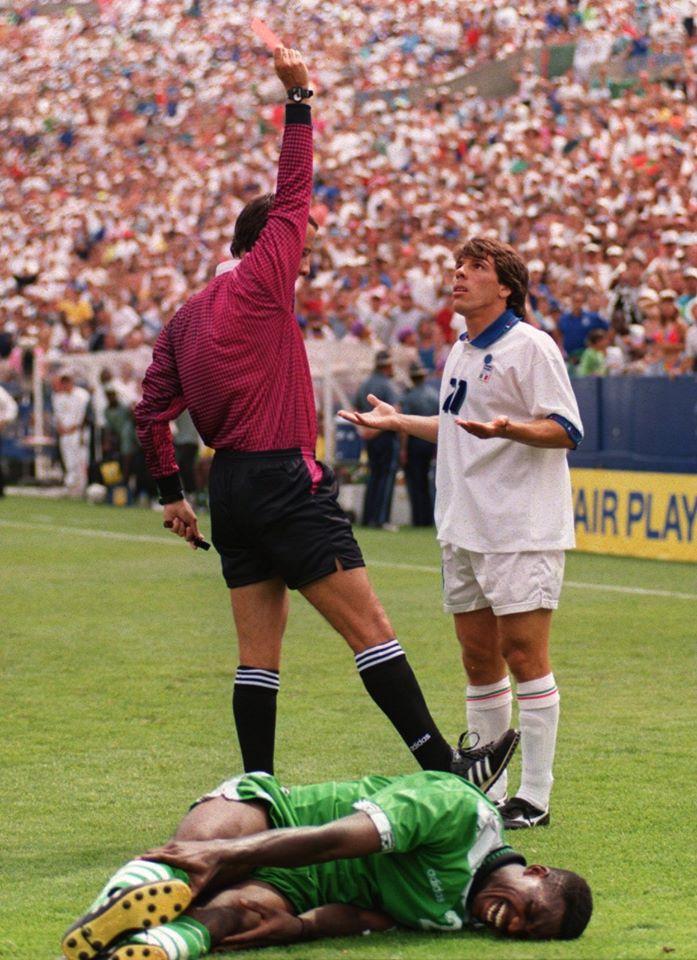 Nella scatola dei ricordi c’è un posto speciale per il gol che regalò all’Italia il secondo successo della sua storia a Wembley dopo quello firmato da Fabio Capello nel novembre del ’73 ("È stato bellissimo per me e per i tanti italiani che vivevano in Inghilterra"). Ma è impossibile dimenticare una delle più grandi ingiustizie subite da un calciatore della Nazionale. Se in Italia Arturo Brizio Carter non ha la stessa notorietà di Byron Moreno è solo perché la doppietta di Roberto Baggio con la Nigeria evitò all’Italia una clamorosa eliminazione agli Ottavi di finale del Mondiale americano. Il nome dell’avvocato messicano resterà per sempre impresso nella mente di Zola, espulso per un fallo inesistente dodici minuti dopo il suo ingresso in campo. Si giocava al Foxboro Stadium Boston, era il 5 luglio, e quel giorno Zola compiva 28 anni: "È stato senza dubbio il peggior compleanno della mia vita. Non avevo fatto niente, quando ho visto il cartellino rosso non volevo credere ai miei occhi". Il danno oltre la beffa le due giornate di squalifica: "Un peccato non aver avuto più spazio, sentivo che avevo molto da dare". E pensare che per volare negli Stati Uniti aveva dovuto battere la concorrenza con un certo Roberto Mancini: "Eravamo in ballottaggio. Roberto era un giocatore straordinario, probabilmente anche lui come me non è riuscito a dimostrare tutto il suo valore in Nazionale".
