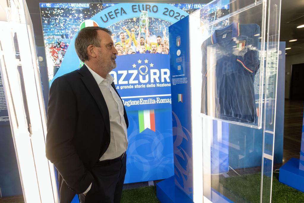 La mostra "Azzurra: la grande storia della Nazionale" nasce nella primavera scorsa come ha raccontato Matteo Marani, presidente Fondazione del Museo del Calcio: "Questa giornata inizia molto tempo fa, quando nel maggio scorso con il presidente della FIGC Gabriele Gravina e il governatore Stefano Bonaccini abbiamo deciso di portare in Emilia-Romagna un pezzo del Museo del Calcio. È un’idea che è partita prima del successo di Wembley e del crescente interesse dei visitatori verso il Museo. Non si tratta solo di calcio, ma parte della storia dell’Italia."