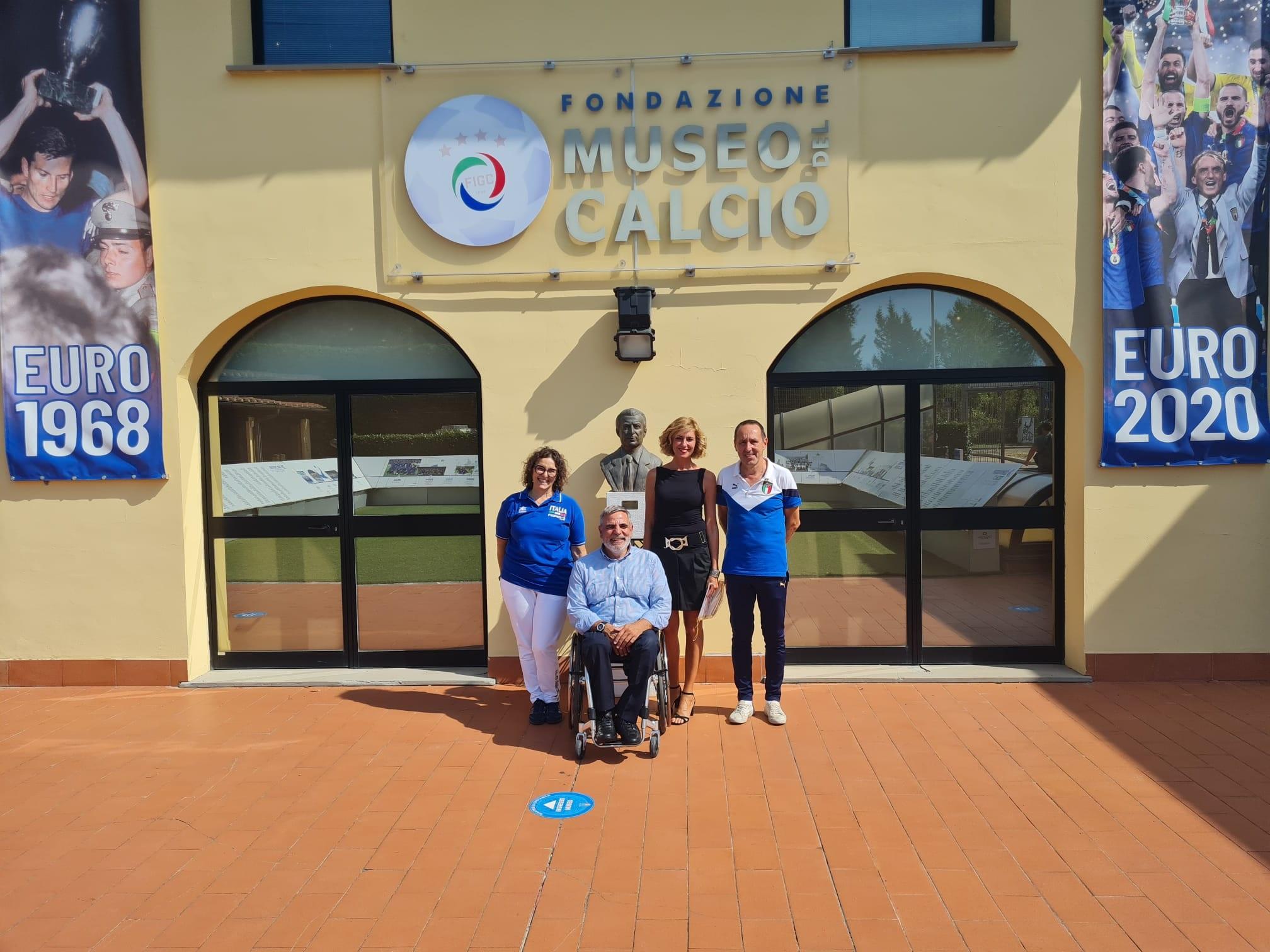 Prima il tour guidato alla presenza del presidente della FISPES (la Federazione Italiana degli Sport Paralimpici e Sperimentali), Sandrino Porru, e del delegato della Regione Toscana della FISPES, Michela Castellani, quindi la visita da parte di tutti gli atleti della Nazionale, che hanno ripercorso la storia della Federcalcio attraverso maglie, oggetti e trofei vinti in oltre centoventi anni di storia.