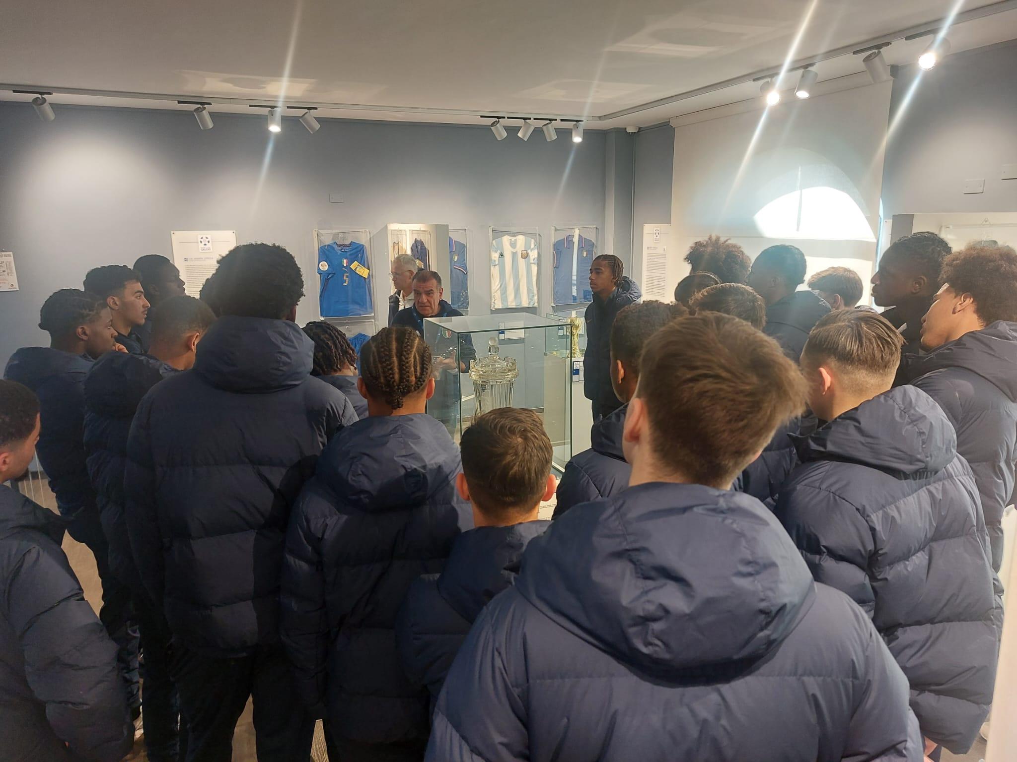 Accompagnati dal tecnico José Alcocer, i giovani calciatori francesi hanno potuto ammirare le maglie azzurre a partire da quelle dei primi trionfi negli anni Trenta, fino a quelle indossate in occasione dell’ultimo Europeo vinto nel 2021.