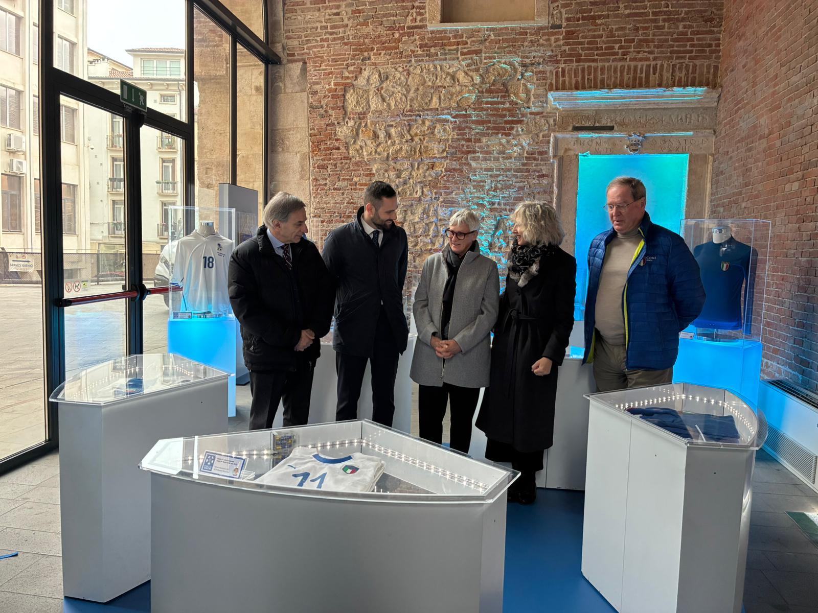 È stata inaugurata questa mattina nella Sala degli Zavatteri della Basilica Palladiana di Vicenza l’esposizione ‘Sfumature d'azzurro’, promossa dalla FIGC e dal Museo del Calcio Coverciano in collaborazione con il Comune della città veneta, che sabato 7 marzo alle ore 18.15 farà da cornice a Italia-Danimarca, la seconda partita delle qualificazioni mondiali della squadra di Andrea Soncin.