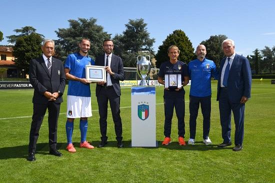 La Nazionale ha quindi ricevuto il Pegaso d’Oro della Regione Toscana, con il governatore Eugenio Giani e il presidente del Consiglio regionale Antonio Mazzeo che hanno consegnato il premio al presidente Gravina, al Ct Roberto Mancini e al capitano Giorgio Chiellini.