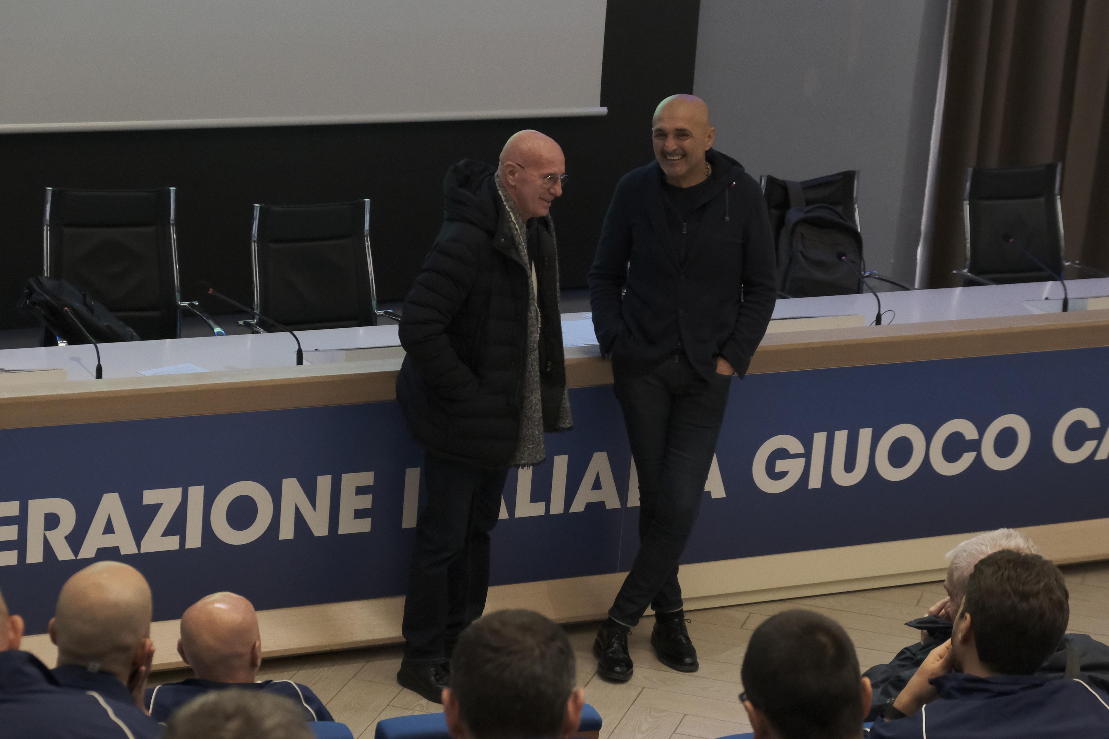 Sì sono ritrovati questa mattina a Coverciano, sotto la supervisione del coordinatore Maurizio Viscidi, i tecnici delle Nazionali giovanili maschili. Si tratta del primo incontro di questo 2024 e il primo di questa stagione della durata di due giorni: un'occasione di confronto e per seguire in aula le lezioni a cura del Ct Luciano Spalletti e del commissario tecnico della Nazionale femminile Andrea Soncin, insieme alla sua vice Viviana Schiavi. Presenti per parlare delle loro esperienze professionali anche il Ct dell'Italfutsal - e della Nazionale Under 19 di calcio a cinque - Massimiliano Bellarte, insieme al suo vice Vanni Pedrini, e il commissario tecnico degli Azzurri a Usa '94, Arrigo Sacchi.