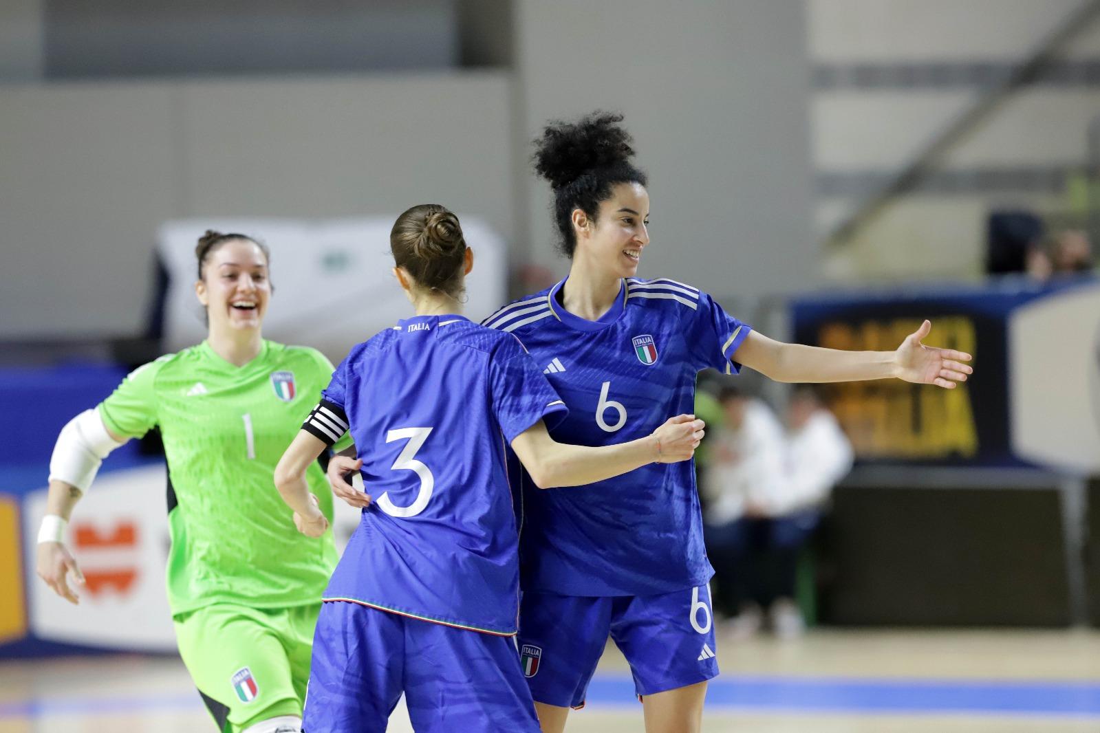 LA RIPRESA. In avvio di secondo tempo, però, l’Ucraina pareggia al 3’ con una ripartenza guidata da un’uscita in solitaria del portiere Terekh che, generando una superiorità numerica, permette alle ospiti di fare 2-2 ancora con la grande veterana della squadra Iuliia Forsiuk (classe 1985). Il tema tattico però non cambia ed è sempre l’Italia a fare la partita: ci provano Rafa Dal’Maz e Sara Boutimah, ma Terekh è sempre molto attenta. Dopo una lunga fase di tentativi, allo scoccare del minuto 14 le Azzurre tornano nuovamente avanti: assist illuminante di Grieco e rete del 3-2 segnata da Boutimah liberata sul secondo palo dal passaggio smarcante della 7. È ancora un’ispiratissima Boutimah a dilatare il parziale: sul pallone in profondità di Ghilardi (la più giovane delle Azzurre, classe 2003) la numero 6 calcia al volo di sinistro per il 4-2 che le vale anche la tripletta personale. Boutimah, con le reti numero 20, 21 e 22 con l’Italia, festeggia così la sua presenza numero 30 in Azzurro, mantenendo un’altissima media realizzativa.