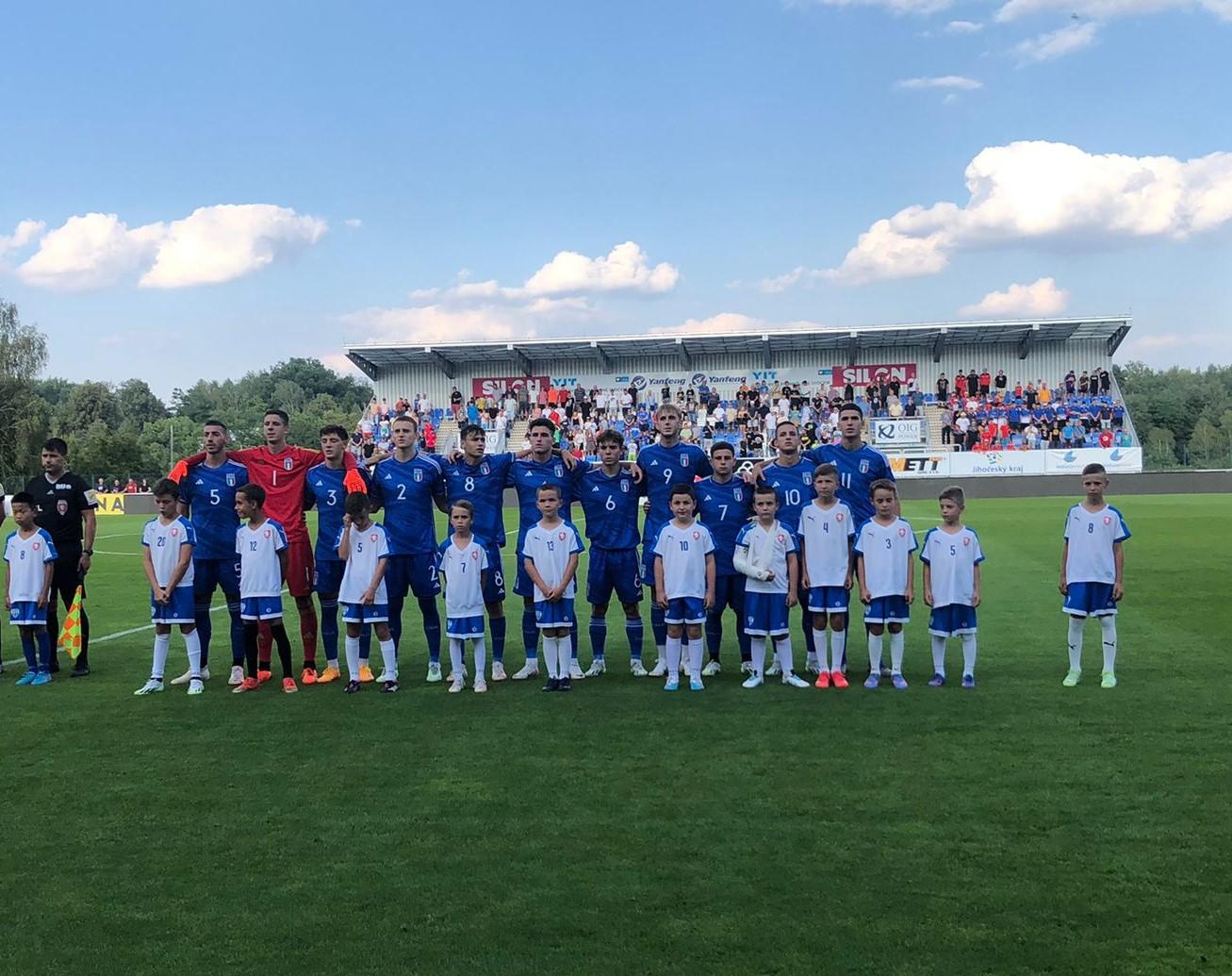 Bollini ha cambiato dieci undicesimi rispetto alla partita di Berlino: unica conferma, il portiere Lorenzo Palmisani, dopo che Davide Mastrantonio (indisponibile) è rientrato in Italia ed è stato sostituito da Nicola Bagnolini. Dopo un primo tempo in cui la Repubblica Ceca si è resa pericolosa con Masek e Jambor, l'Italia è salita di intensità creando occasioni con Bozzolan, Volpato e Pagano. Quattro cambi a inizio ripresa, con Barbieri, Hasa, Regonesi e Koleosho al posto di Comuzzo, Roman, Pisilli e Volpato. Di Amatucci, al 63', il gol partita con un tiro da fuori, con l'Italia capace di resistere nel finale all'assalto dei padroni di casa, che hanno sfiorato il pareggio con Spacil: decisivo Palmisani nell'occasione.