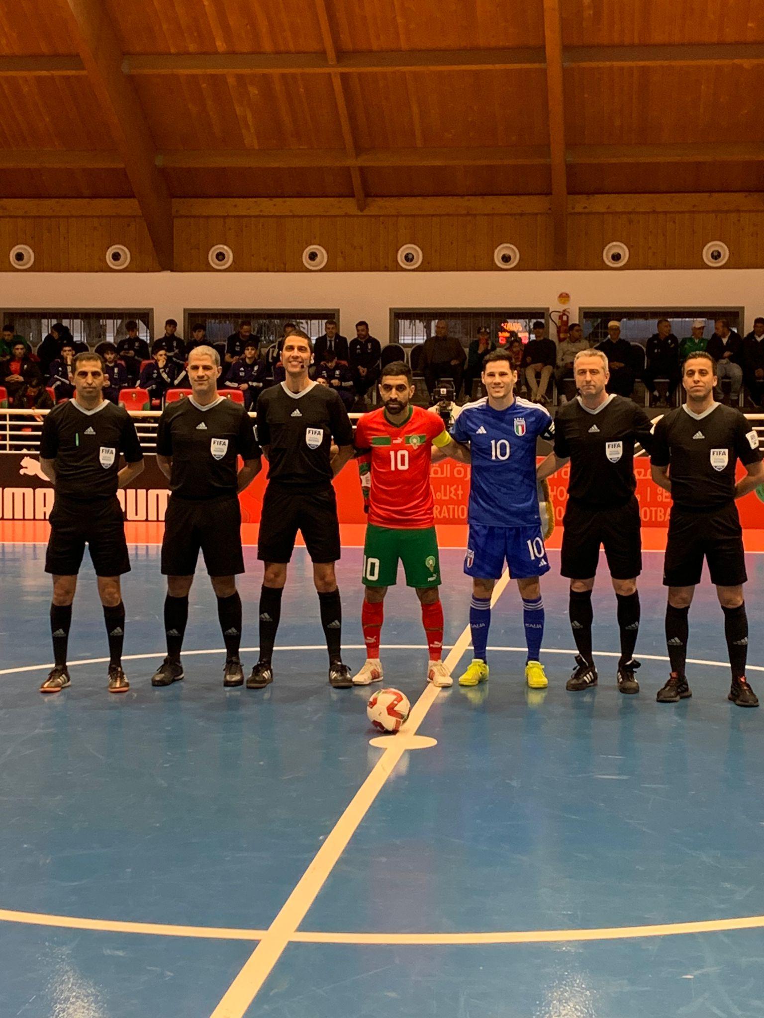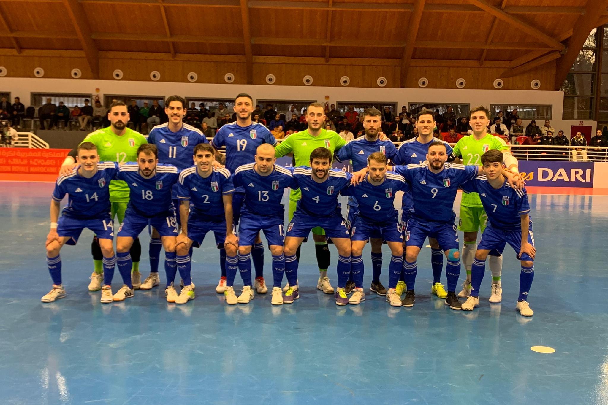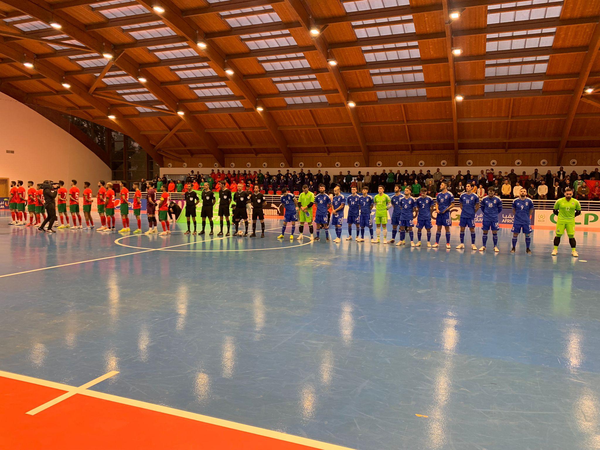 LA PARTITA. Bellarte sceglie Bellobuono fra i pali completando il quintetto con Merlim – oggi capitano per l’assenza di Musumeci – Donin, Molaro e Brunelli. Per questi ultimi due si tratta dell’esordio assoluto in Nazionale maggiore. Al 10’ del primo tempo il Marocco passa in vantaggio con una ripartenza ben finalizzata da Amazal: il 7 duetta bene con Maimon e spinge in rete l’1-0. L’Italia reagisce due volte su iniziativa di Merlim che va vicino al pareggio. La chance più grande dell’1-1 capita invece sul destro di Pulvirenti a 90’’ dall’intervallo: il giocatore della Meta Catania stampa sul palo un tiro a porta vuota e sul prosieguo dell’azione è perfetto Anbia, il portiere marocchino, sui tiri dello stesso Pulvirenti e Motta. Gol sbagliato, gol subito, regola non scritta che punisce gli Azzurri, due volte nell’ultimo minuto di gioco. In 40’’ El Mesrar trova due gol in rapida sequenza e all’intervallo è 3-0 Marocco. Per l’Italia è una mazzata difficile da digerire, ma gli Azzurri provano a riaprirla creando palle gol nei primi 10' della ripresa, anche se si espongono alle letali ripartenze dei padroni di casa: Bellobuono si supera in un paio di circostanze. Poi l’Italia non è neanche fortunata al minuto 8, con Motta che colpisce il legno da posizione defilata. Così, a metà ripresa, il Marocco allunga ancora: è Idrissi a fare 4-0 sfruttando l’assist di Amazal arrivato al termine di una grande giocata in accelerazione. Bellarte si gioca la carta del portiere di movimento, con l’Italia che prende una traversa con Motta e ha un’altra buona chance con Arillo. A sua volta il Marocco non approfitta di un paio di ottime chance con la porta vuota e il risultato alla fine non cambia più.