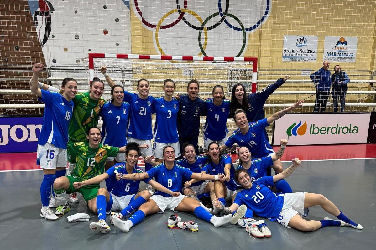 Potremmo utilizzare fra i più vari e disparati superlativi per definire e raccontare il successo della Nazionale femminile di futsal di questa sera. Ma basta dire che l’Italia, per la prima volta nella sua storia, al dodicesimo tentativo (e dopo 10 sconfitte) ha battuto la Spagna, tre volte (su tre) campione d’Europa. E non è un successo casuale, anzi, è tutto l’opposto: è il compimento di un processo di maturazione iniziato ormai da tempo, con una striscia di risultati utili consecutivi interrotta proprio ieri nel ko per 2-0, ma ripresa quest’oggi nel match di Torre Pacheco grazie a quella che, con ogni probabilità, è la miglior prestazione di sempre delle Azzurre. Decidono la sfida i gol di Ferrara e Dal’Maz, arrivati in un primo tempo (al 5’ e all’11’) da incorniciare, una capacità gestionale della partita super che rende la ripresa un lento ma inesorabile scorrere del tempo: anche perché nel momento di maggiore sofferenza, con la Spagna che prova il tutto per tutto, Vanelli segna il 3-0 a 3’ dalla fine e Mansueto fa partire la festa a dieci secondi dal suono della sirena dopo il momentaneo 3-1 segnato da Vane Sotelo. Mai l’Italia aveva vinto contro la Spagna, mai aveva segnato più di due gol, mai aveva avuto più di un gol di vantaggio, mai aveva giocato con questa personalità. Una serie di mai spazzati via dalla partita di Torre Pacheco.