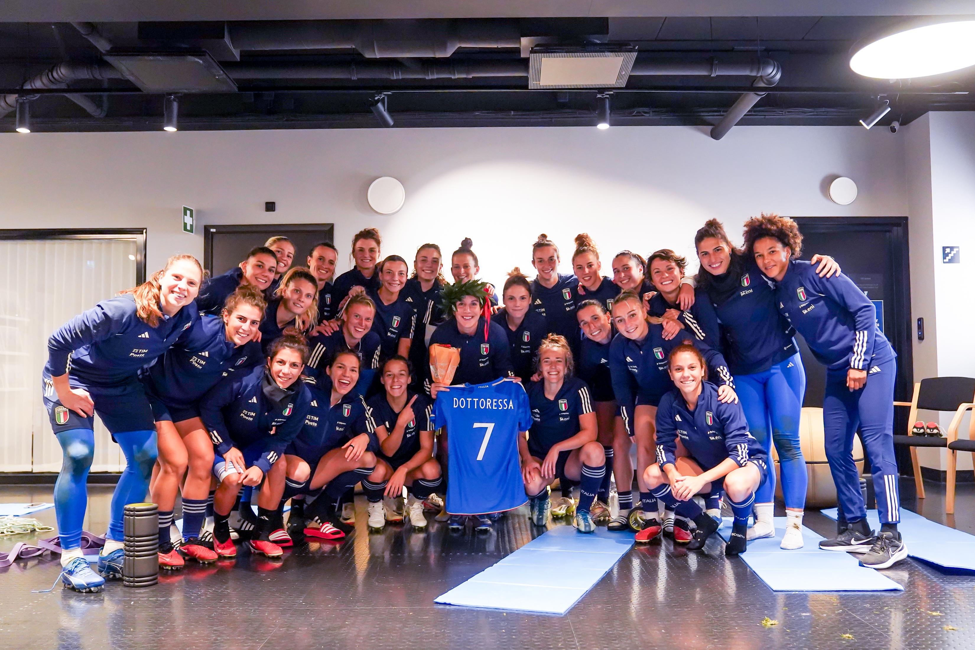 Nel pomeriggio la squadra e tutta la delegazione azzurra presente a Malmö ha festeggiato Gloria Marinelli al New Stadium (dove domani sono attesi circa 12mila spettatori). L’attaccante del Milan - tornata in Nazionale maggiore a due anni di distanza dall’ultima convocazione - proprio oggi ha conseguito la laurea magistrale in Sport e Management, discutendo la tesi in diritto amministrativo sportivo poco prima della rifinitura. Un importante traguardo personale condiviso con le compagne di squadra, in attesa di poter presto gioire tutte insieme sul campo.